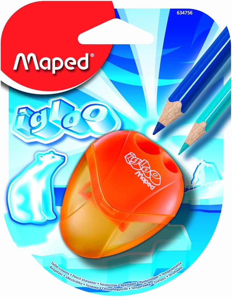 The Maped Igloo 1-Hole Left-Handed Canister Pencil Sharpener is the ultimate tool for left-handed individuals seeking a comfortable and efficient sharpening experience. Its unique left-handed design, featuring a mirrored blade, ensures natural and precise sharpening motions, while the reversed operation eliminates the frustration of backward spinning. Compact and ergonomically shaped, it slips easily into any pencil case or bag, making it an ideal companion for school, work, or on-the-go use. The clear, shatter-resistant canister allows for easy monitoring of shavings and simplifies maintenance. Universally designed, it sharpens all standard pencils to a perfect point every time. Maped, a brand synonymous with creativity and quality, offers this affordable, durable sharpener to enhance your writing and drawing, ensuring you're always prepared for any task at hand.