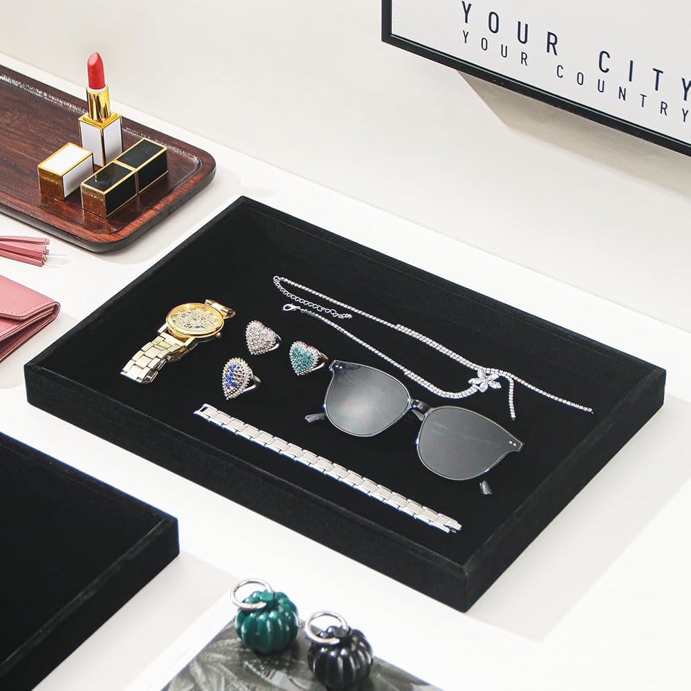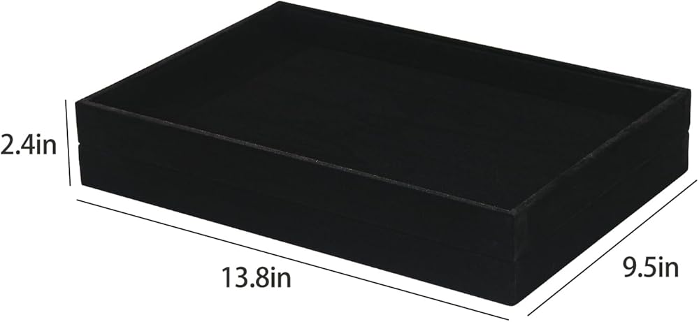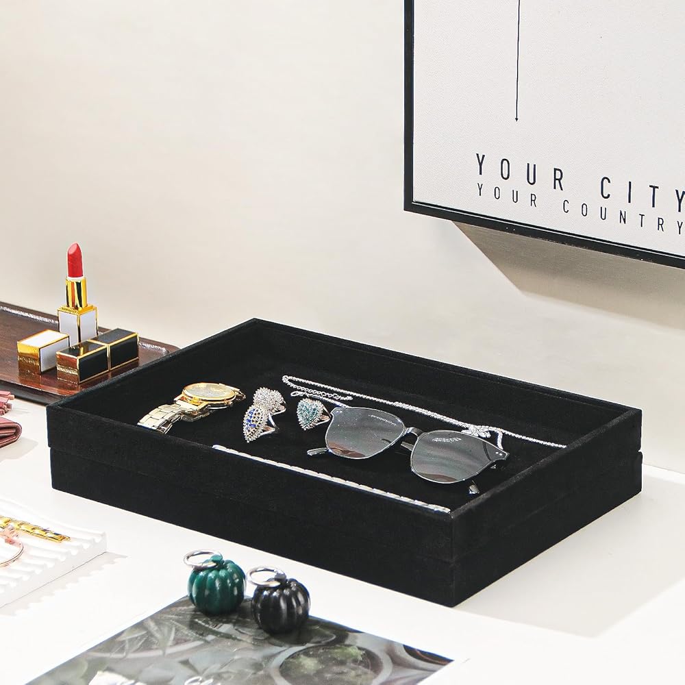 Byken 2 Pcs Stackable Jewelry Organizer Trays for Drawer,Blank Grid Jewelry Display Tray for Selling,Bedside Desktop Storage Dish for Girls (Black)
