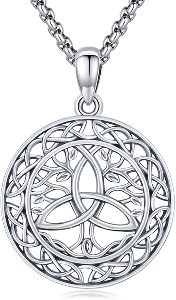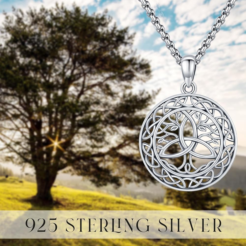 Tree of Life Necklace 925 Sterling Silver Tree Pendant Irish Celtic Knot Necklace Trinity Knot Pendant Irish Life Tree Celitc Jewelry Gifts for Men Women (Gold, Black, Silver)