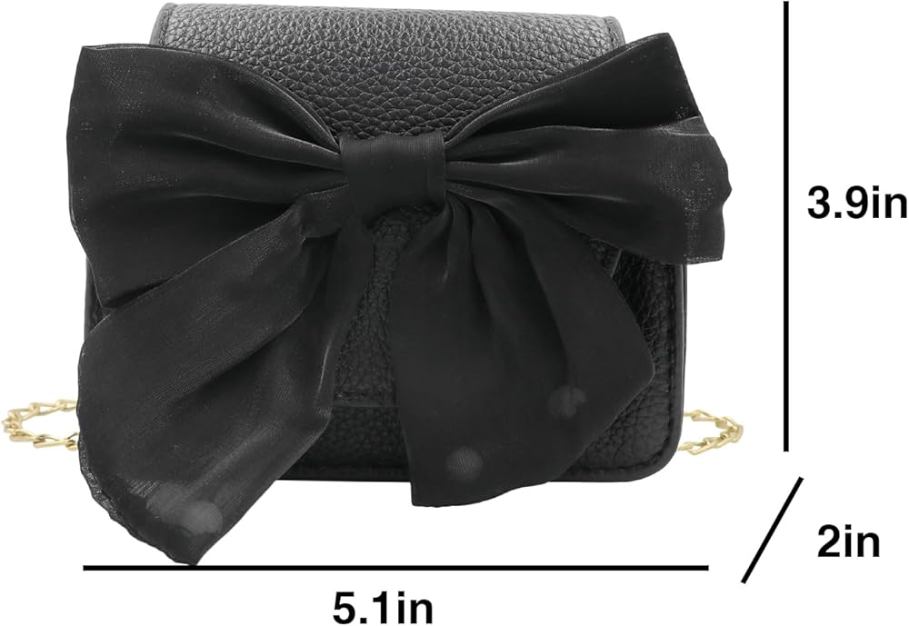 Size: 5.1" x 3.9" x 2" (Length x Height x Thickness). The bow crossbody purse is small and cute, no burden to wear, suitable for girls, little girls, toddler girls.