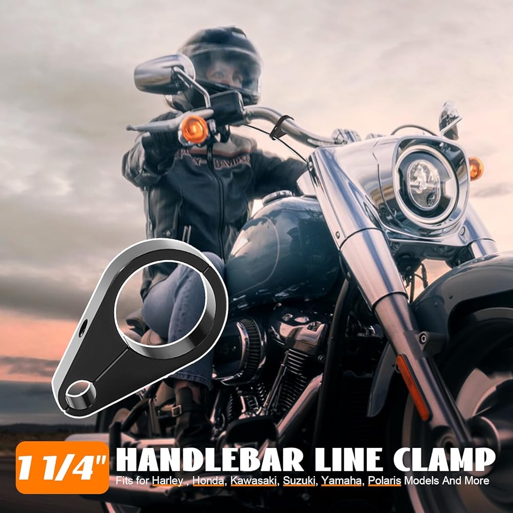 Fitment: The clutch cable brake line clamp are universal for Harley Can-Am, Honda, Kawasaki, Suzuki, Yamaha, Polaris models and more, fits 1" diameter motorcycle handlebars or frame mount and the cable hole is 3/8"