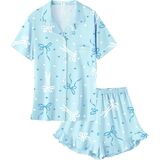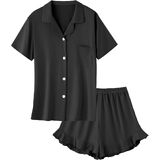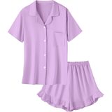 Unique Fashion Designed: 2 Pcs Pajamas Set, Comfortable and breathable pajama set with a button-down top and front pocket. The top features a notch collar, single patch pocket, and ruffle detail at sleeve opening. The shorts feature an elasticated waistband and feminine ruffle detail at leg opening.