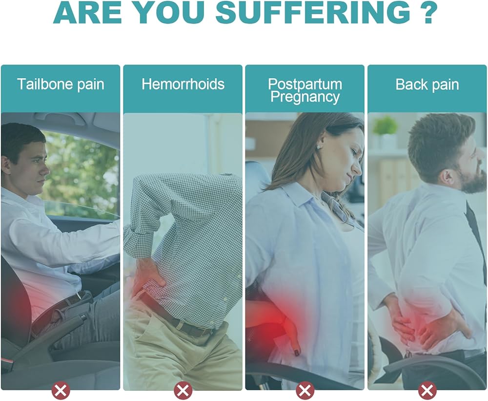Non-slip and Machine washable: The bottom of the seat cushion for tailbone pain relief has a special anti-slip design, so you don't have to worry about the coccyx seat cushion slipping. Non-slip rubber bottom keeps the butt chair cushion in place even when moving on the seat.The cover is removable and machine washable for daily cleaning.Please do not wash memory foam.