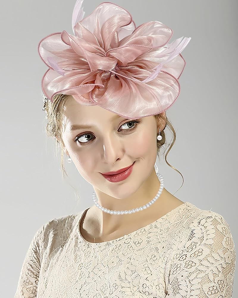 【Organza Blush Pink Fascinator Set】Package include One white Fascinator Hat, One Pair of Gloves, One pearl necklace and One Pair of delicate earring, which is a charming and elegant set, a complete and exquisite party decor color match set. Perfect for women lady tea parties,derbies,weddings,and special occasions;adds a touch of elegance to most outfit