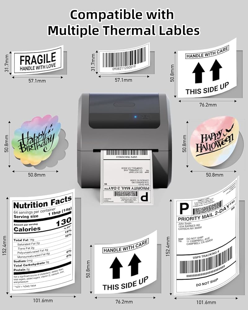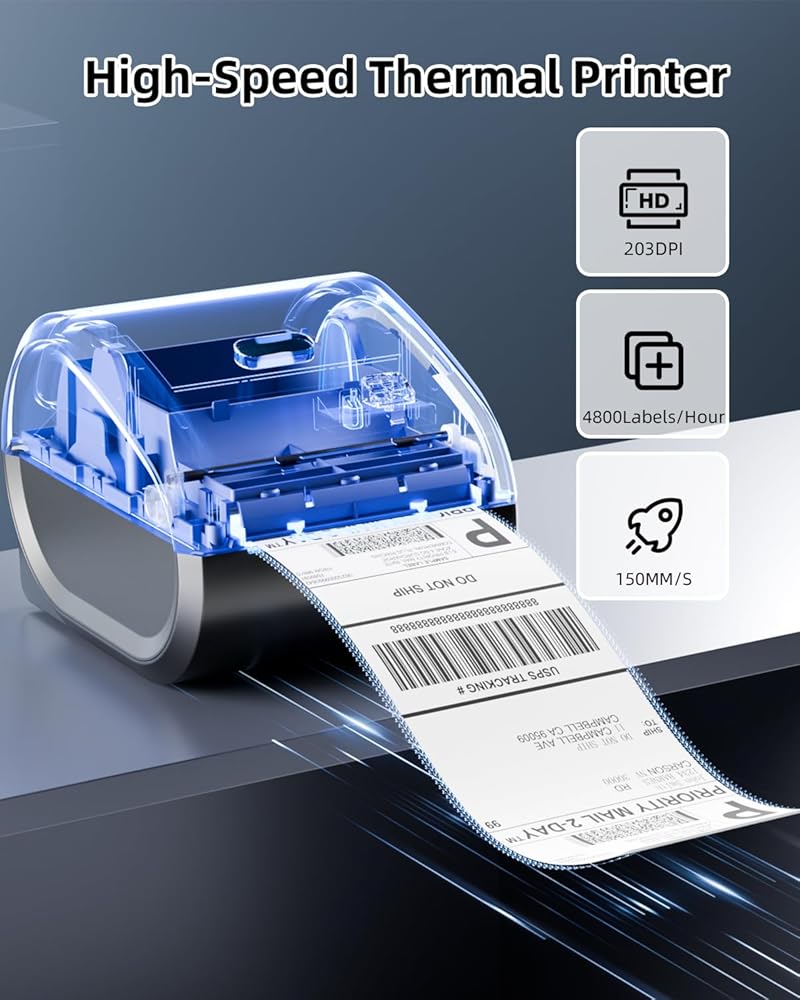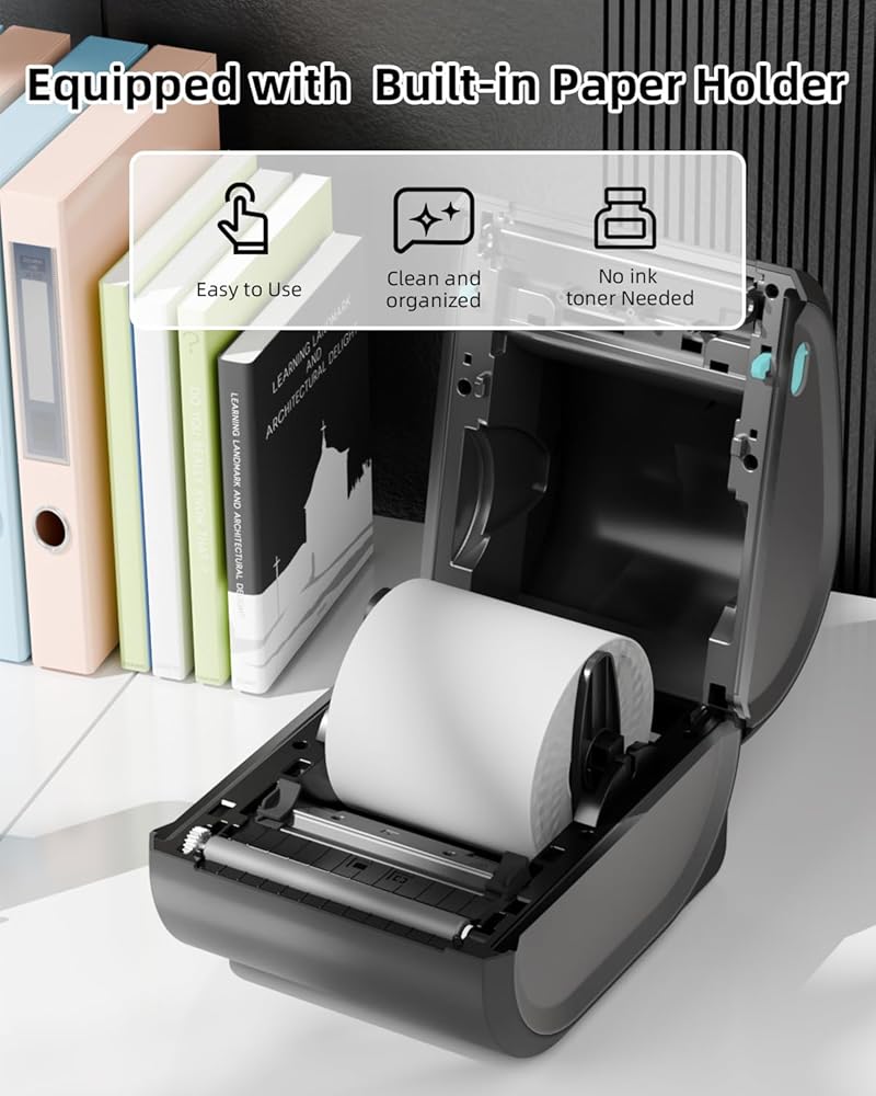 [ 2024 New Thermal Label Printer ] Memoqueen thermal shipping label printer with ①No ink or toner required②Both roll labels and fanfold labels could be printed ③Built-in thermal paper bin design④Print faster and more clearly⑤Compatible with most thermal paper on Amazon(More cost-saving) . It is a cost-effective thermal printer 4x6 for business