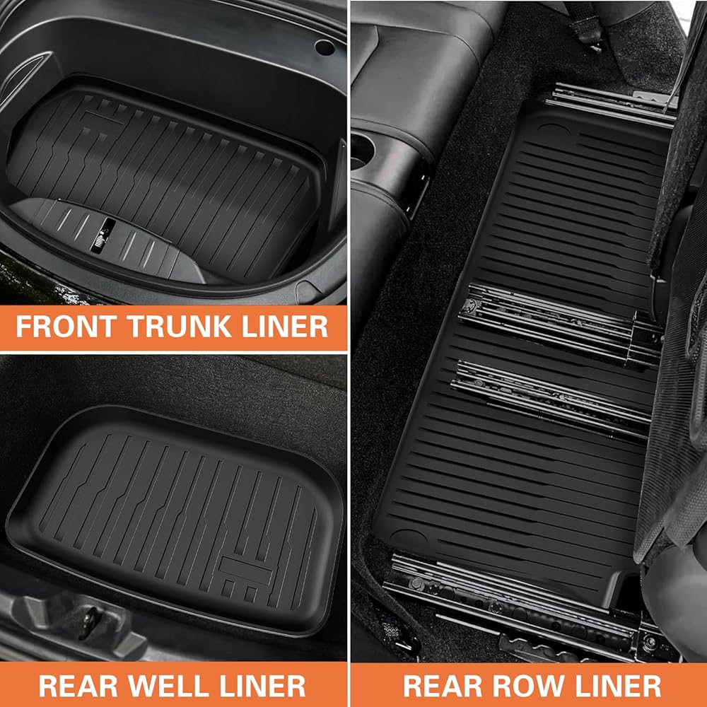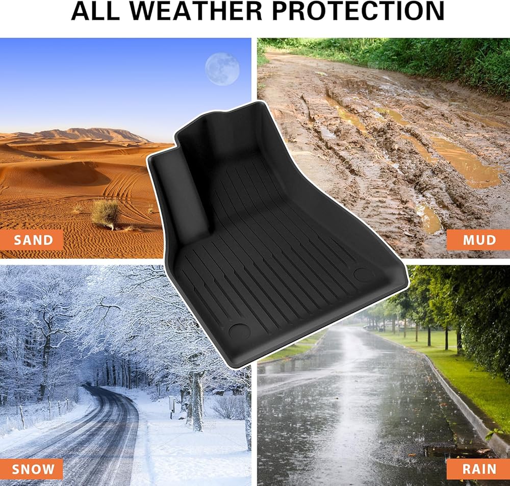 【All-weather waterproof and dustproof mat】This set of 6 floor mats is suitable for the driver, passenger, back seat, front trunk, rear trunk and rear trunk storage space. Designed to provide maximum protection for Tesla Model Y floor from dust, mud, salt, rain, snow and sand, the raised sides provide additional protection from spills and wet items.