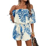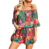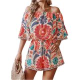 Features: Elastic waist, boho style, one piece short, workout jumpsuit, paisley print, off the shoulder, short, one piece outfit, overall for women, three quarter length sleeve, flounce sleeve, high waist.