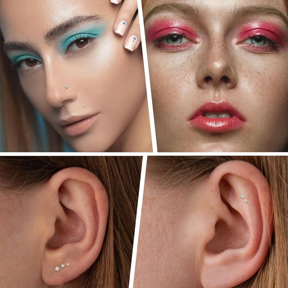 【CONVENIENT AND COMFY PUSH IN EARRINGS】The flat back earring is suitable for labret piercing, lip piercing, nose piercing, helix piercing, conch piercing, tragus piercing, lobe piercing and so many other cartilage earrings.