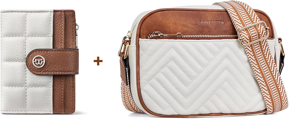 BOSTANTEN Quilted Crossbody Bags for Women & Small Wallet for Women Leather RFID Blocking Card Holder