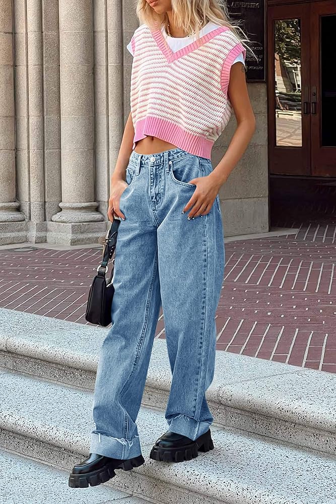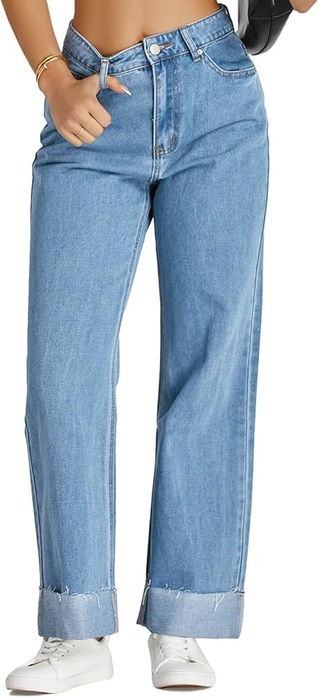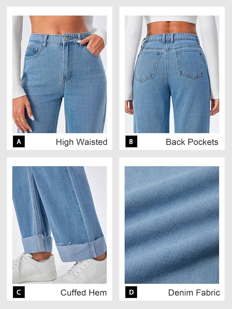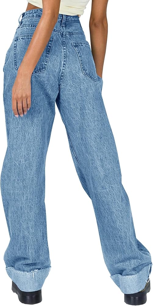 Comfortable Fabric: Crafted from premium denim, these Women's Baggy Cuffed Jeans are durable, comfortable, and stylish. The raw hem and straight leg design create a fashionable look.
