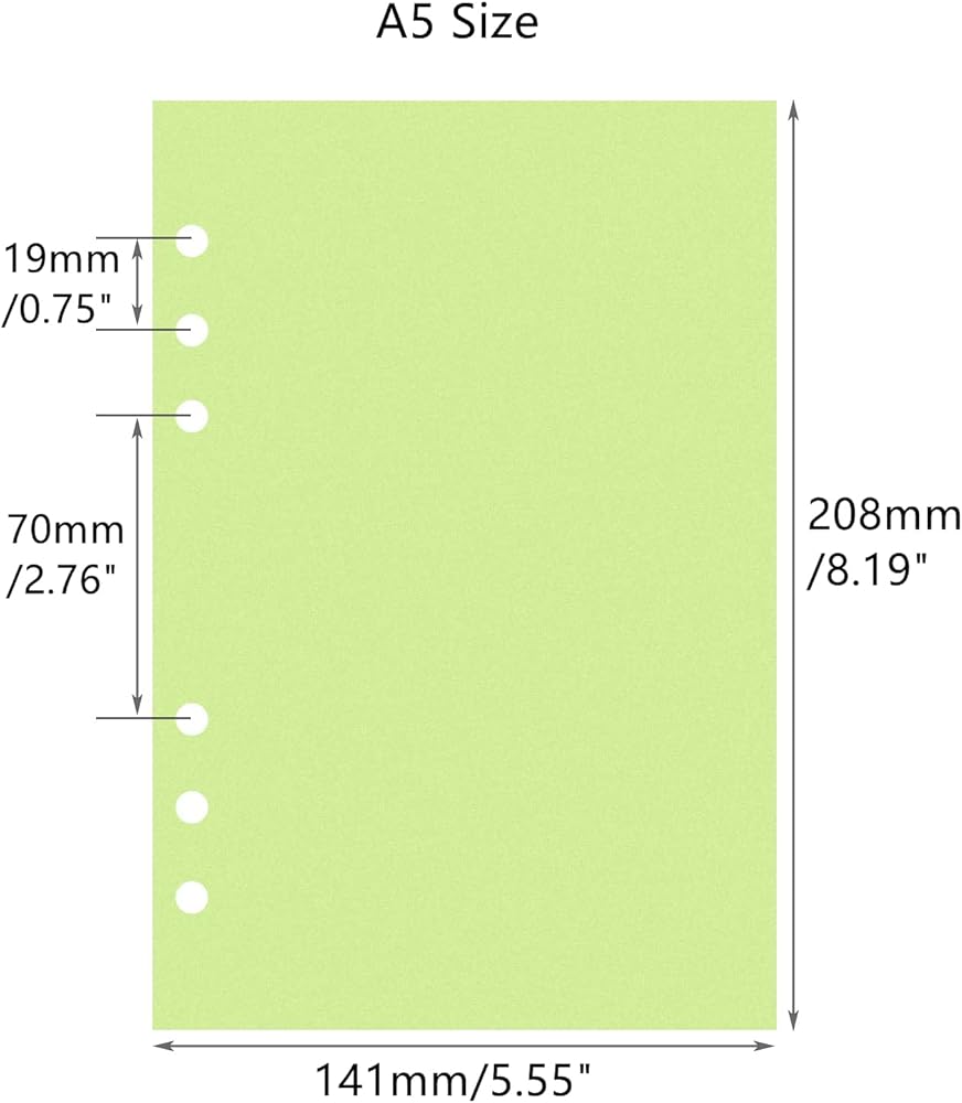 Thick paper size is 142mm x 210mm(5.59" x 5.27"); 6pcs pre-punched holes for immidiately use, suitable for standard A5 size refillable notebook binder, journal, personal planner;