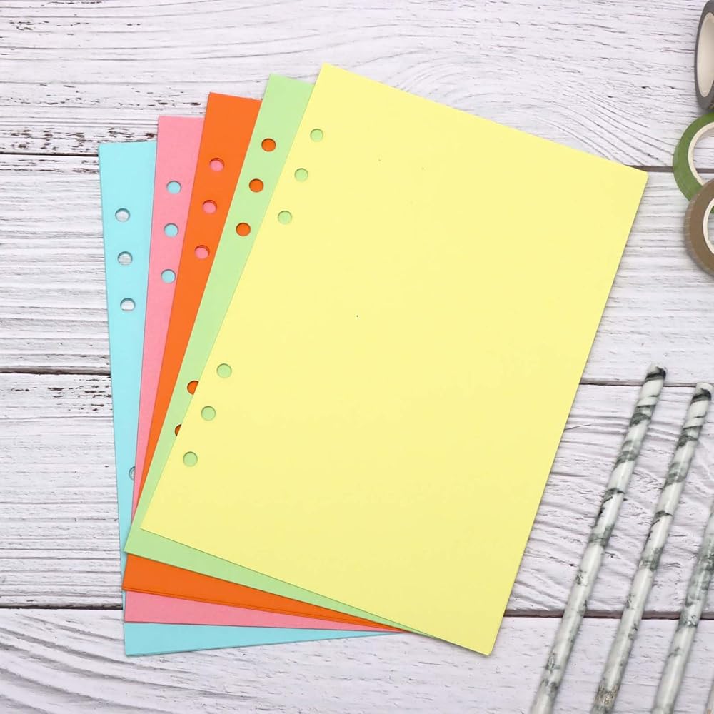 Mogoostry 2 Pack A5 Colored Filler Paper 5 Colors Blank Loose Leaf Refill Paper for A5 6 Ring Refillable Notebook Binder Planner Refills, 50 Sheets per Pack, Total 100 Sheets