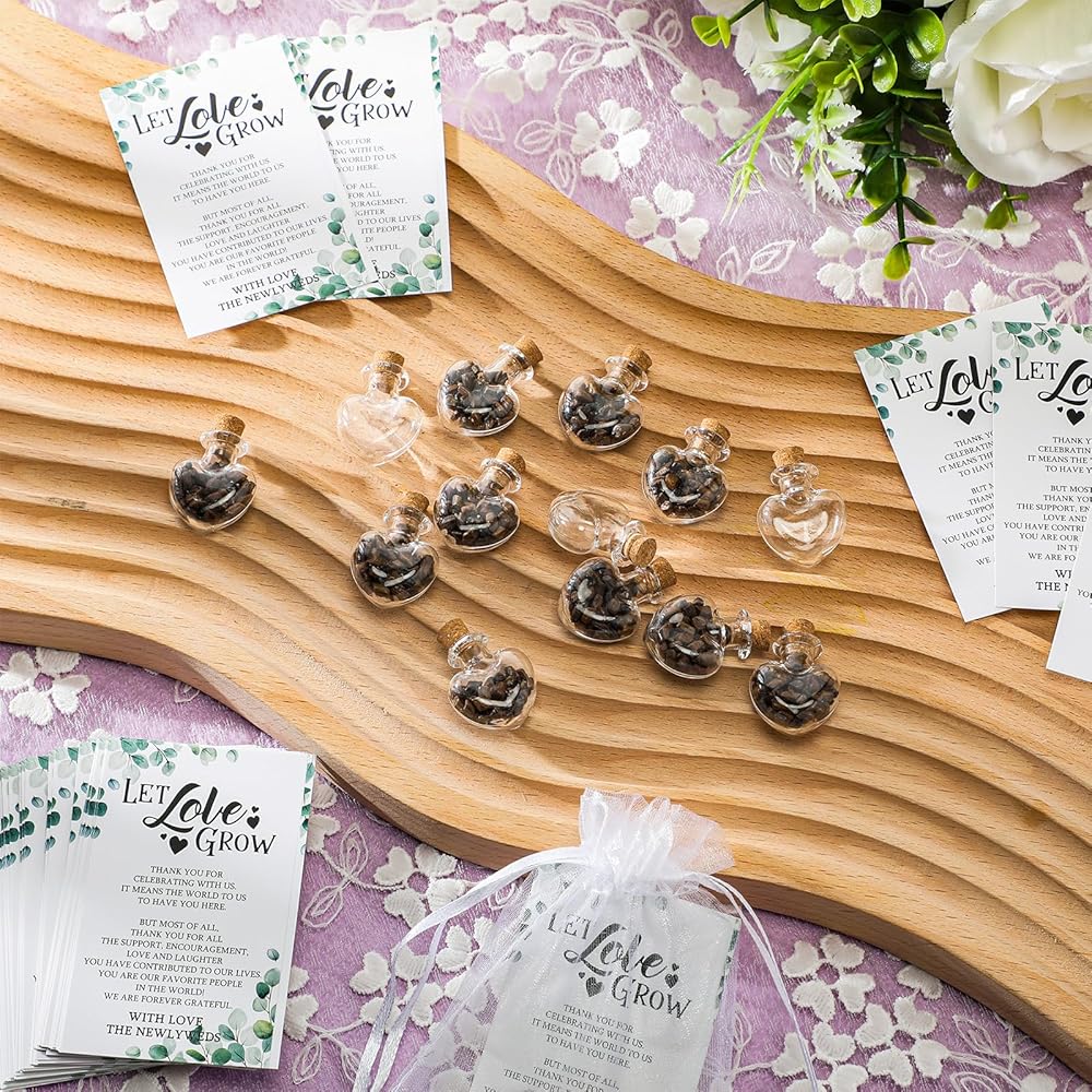 The mini bottles with lids are suitable for storing seeds, perfume samples, messages and small items, wedding thank you cards and small thank you gift bags are suitable for sending to your guests, to make them happy.