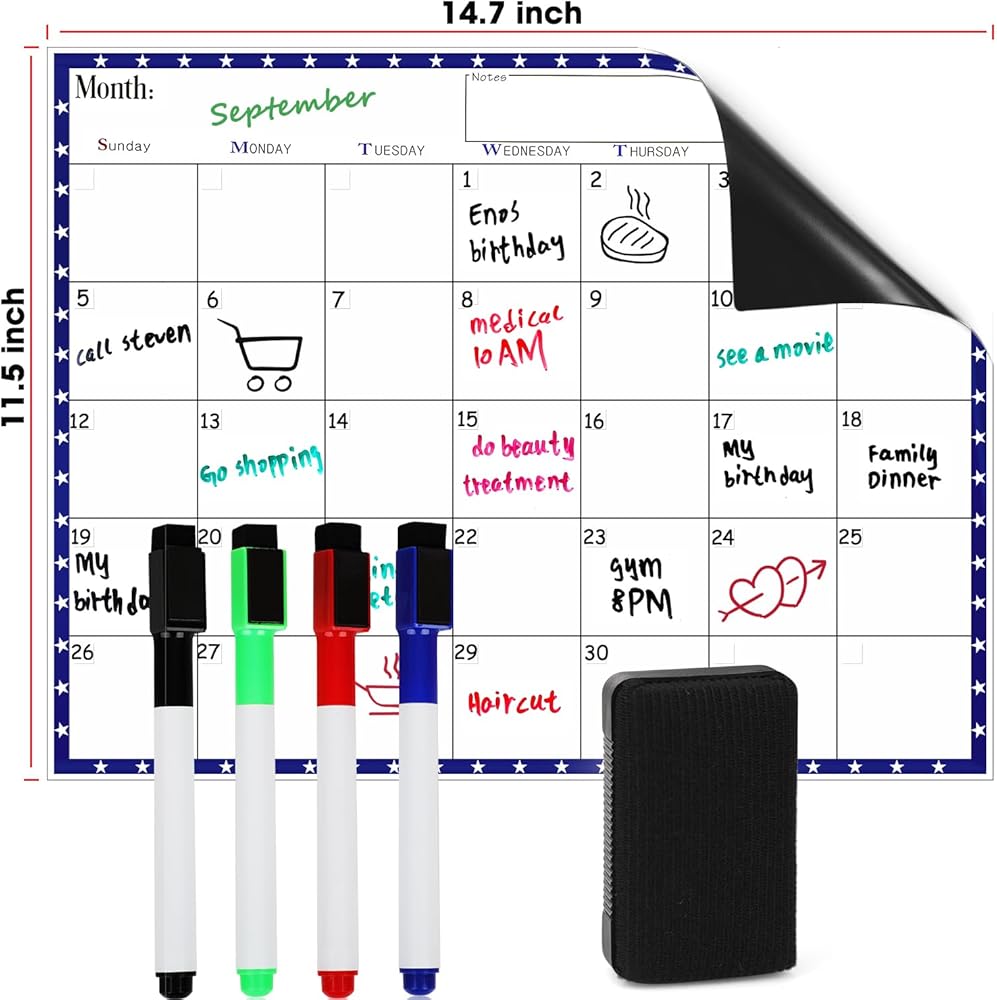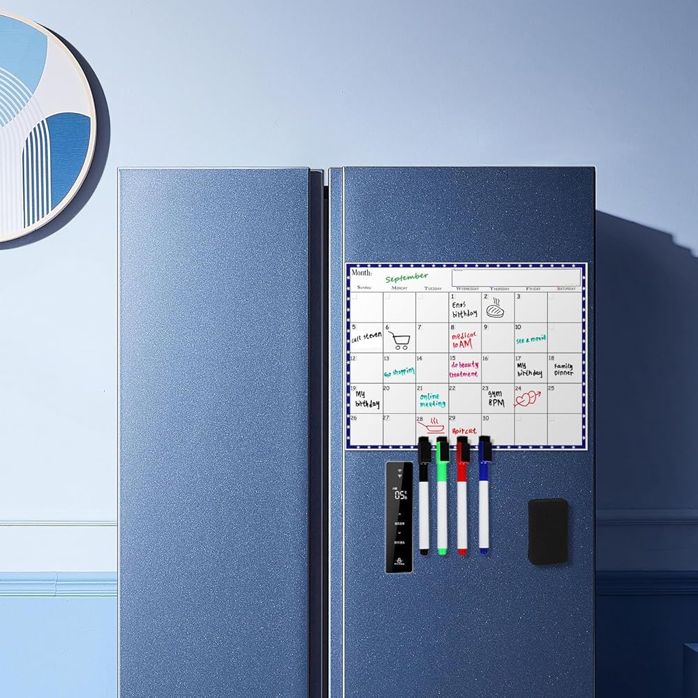 Magnetic Dry Erase Refrigerator Calendar with Markers - 15" x 11" Monthly Fridge Calendar and Today List, Fridge Whiteboard with Back Magnet