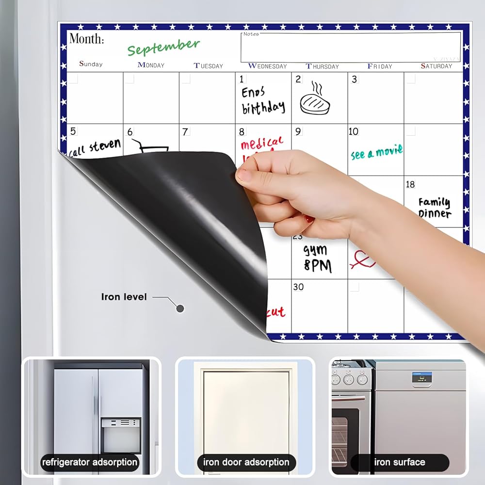 Magnetic Calendar Weekly Calendar Dry Erase Planner Fridge Magnet Sticker to Do Daily Weekly Meal Planner Meal Wall Planner with Magnet Back (Monthly 14.7" x 11.5")