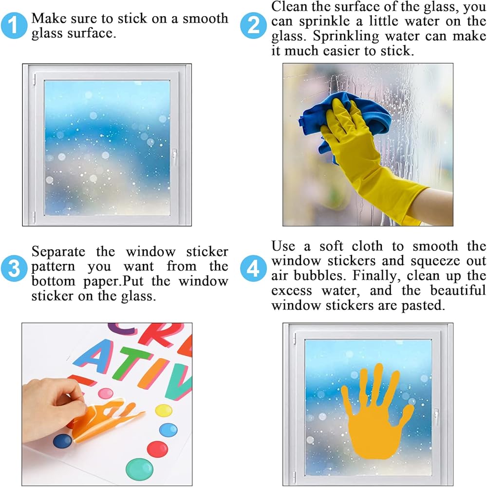 Good-Quality Material - Made from durable PVC material. Before use, you can spray some water on the window, so that the window clings can be more firmly attached to the window, easy to peel, leaving no traces when it is torn off, and the window clings can be reused.