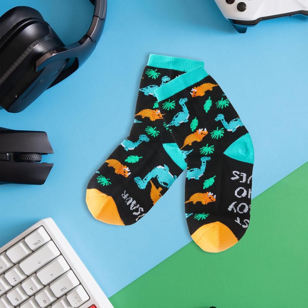 CHRISTMAS GIFT SOCKS FOR KIDS : Imagine how happy kids would be when receiving these funky novelty dinosaur socks as gift! They will can't wait to show off to every friend! These kids funny socks back to school socks can be sent as Birthday Gift, Halloween, Christmas, New Year, Easter, Back to School Gift