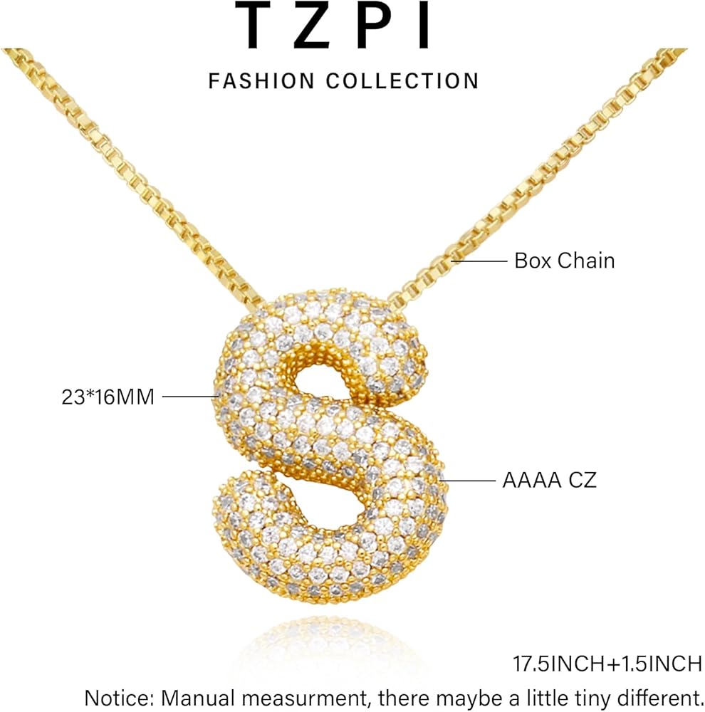 18K Bubble Letter Necklace Gold for Women, Chunky Gold Necklace Rhinestone Initial Necklaces as Mothers day Birthday Gifts Charm Puff Name Pendant Alphabet Non Tarnish Easter Jewelry