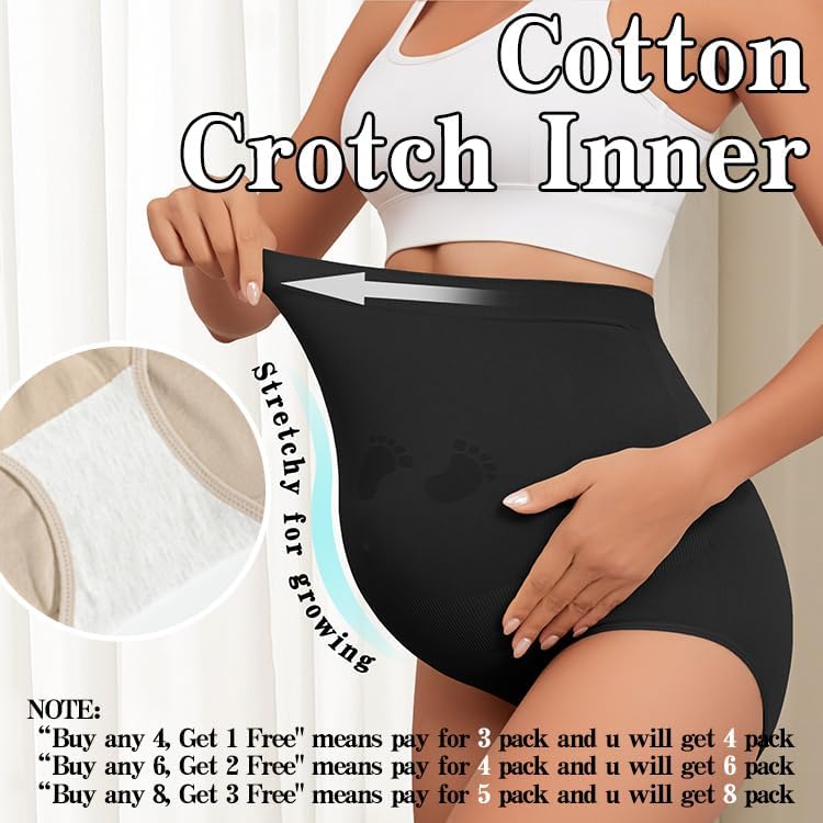 Soft & Stretchy Fabric & Cotton Gusset: The maternity underwear over bump provide comfort and flexibility for moms-to-be with a cozy and stretchy seamless-knit fabric, ensuring the softest support for your belly, waist, and pelvis throughout pregnancy. The pregnancy underwear with cotton crotch inner lining keeps it breathable, healthy, and comfy