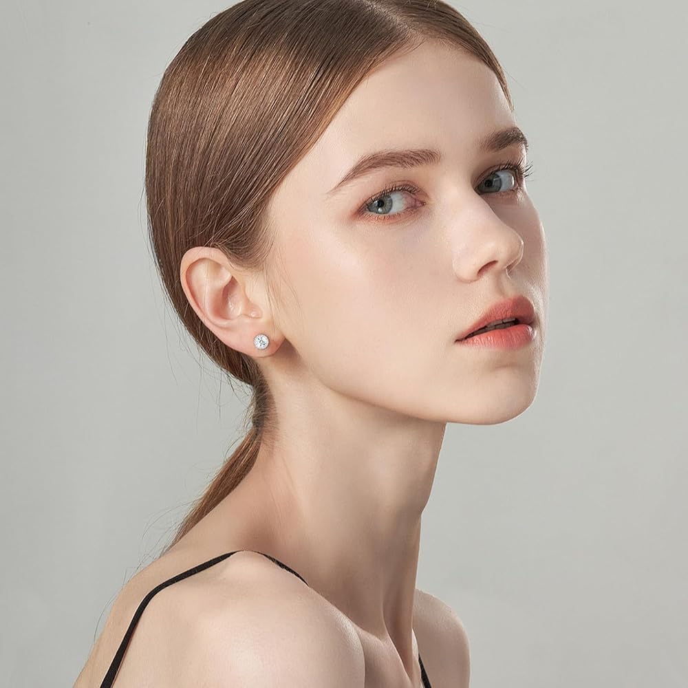 【Secure Earring Backs Design】Our sterling silver push back diamond stud earrings are extremely secure, comfortable, and durable, the backs and studs have smooth edges that fit perfectly into the posts, and the straight flat back stud earrings are easier to wear than moissanite screw back earrings, and do not burden the ear while sleeping. Silver stud earrings can stay with you and your family for a long long time