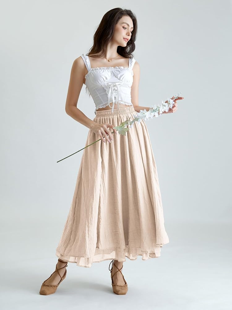 Ankle-Length Elegance - The skirt hits right at the ankle, providing a classic and timeless look that's great for renaissance or victorian themed party, casual wear, work or weekends. It's versatile that can be match different style tops such as tank top, camisole, renaissance outfit, victorian costume, etc. You can match it as you like.