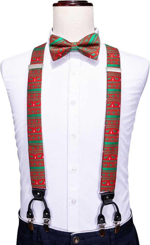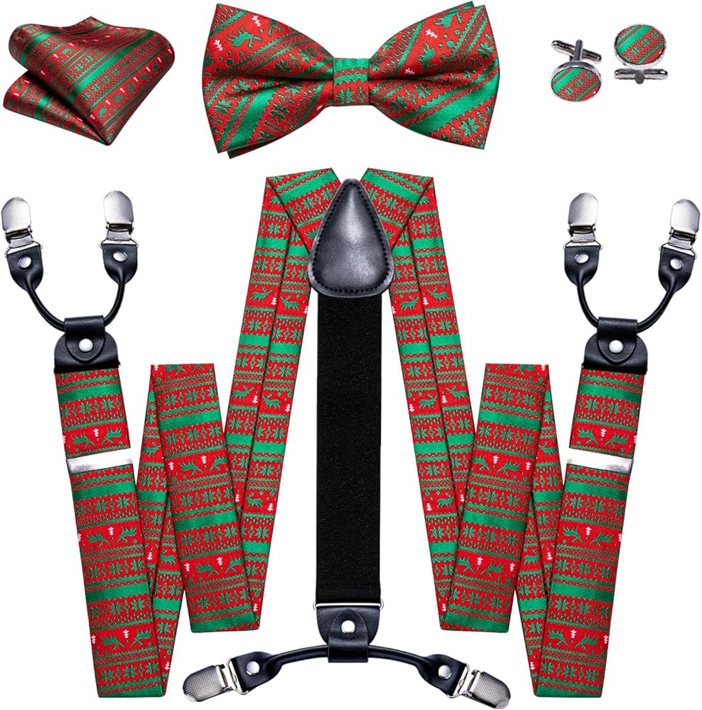 ELEGANT BOX - 1*Christmas Suspender, 1*Bow Tie, 1*Pocket Square, 1 Pair*Cufflinks. YOHOWA has more than 100+ styles of suspender suit waiting for your choice, click the brand name "YOHOWA Store" to see more products.
