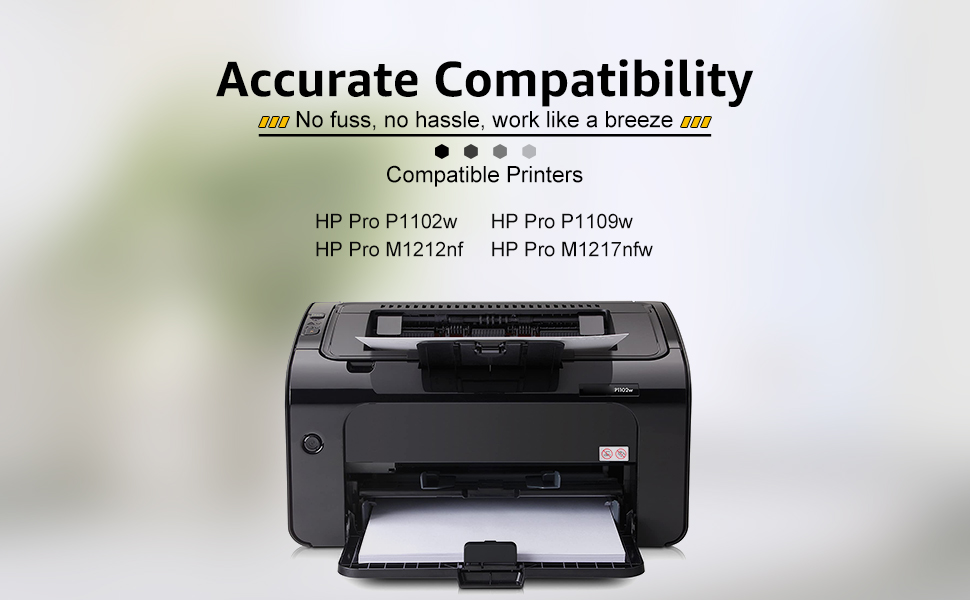 - طرازات الطابعة: متوافقة مع خرطوشة حبر HP LaserJet P1102w P1109w P1102w M121nf M1217nfw، خرطوشة حبر HP LaserJet P1006 P1005 P1505، خرطوشة حبر كانون إيماجيكلاس LBP6000 MF3010 خرطوشة