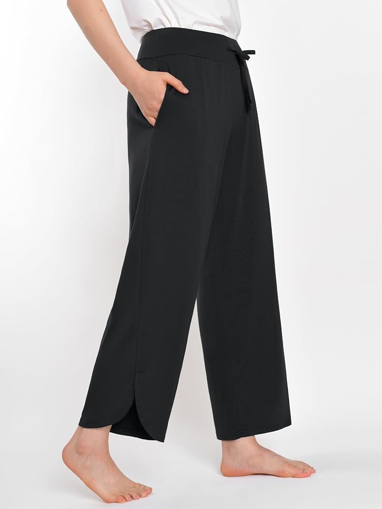 - Wide leg design with side slits looks fashionable; also perfect for yoga, lounging around the house, running errands, traveling and so on