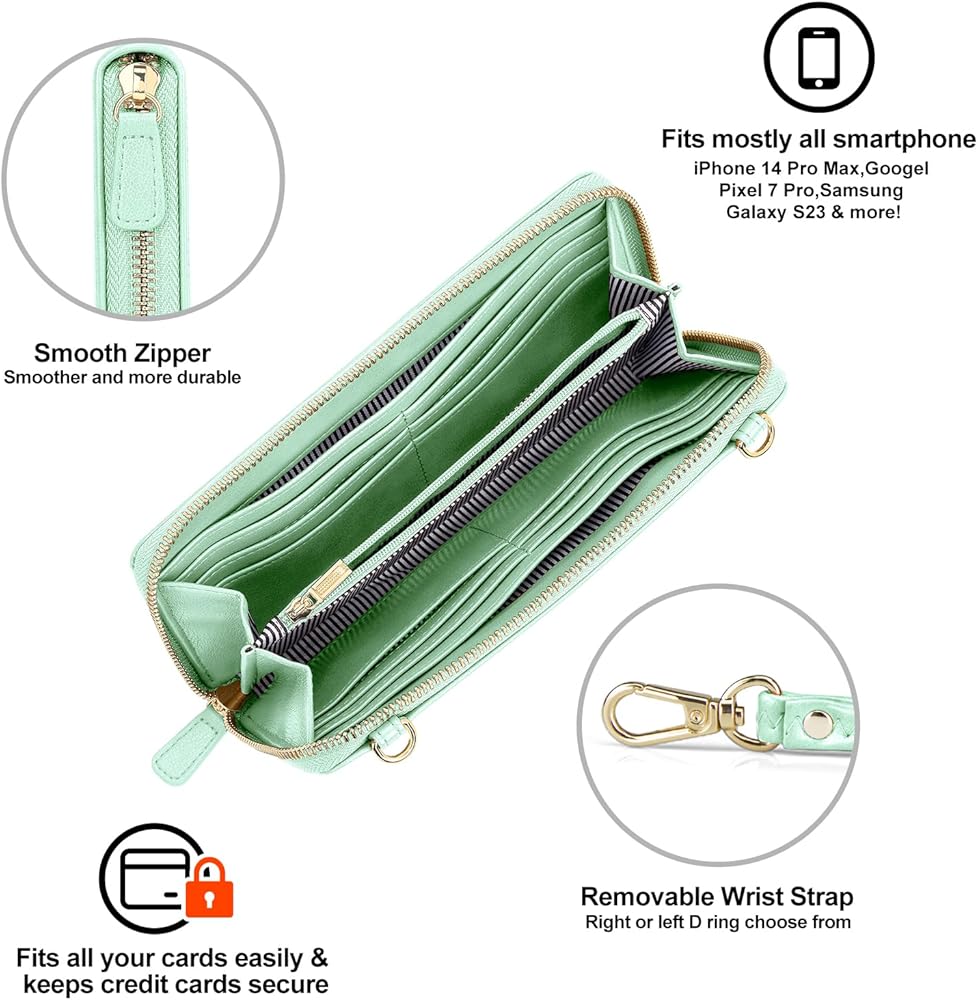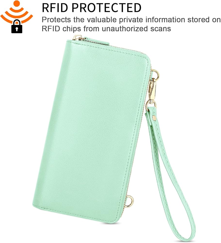 [RFID Blocking]:Our RFID blocking nice wristlet provides today's most advanced RFID-blocking technology, designed to protect your cards IDs from all electronic scanners.Keeps your vital information secure.