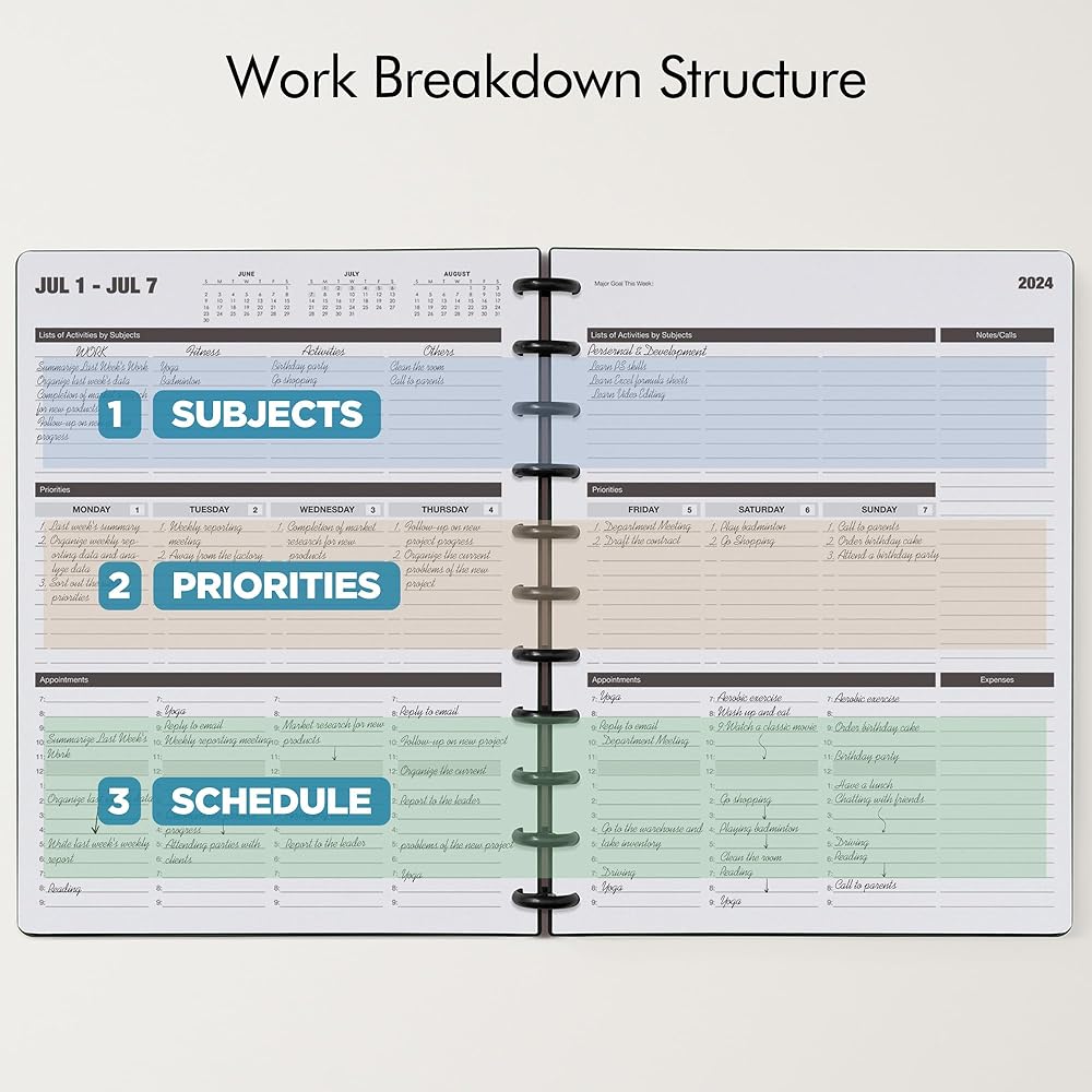 هيكل تقسيم العمل: يعد نظام Planner المكون من ثلاثة أجزاء طريقة فعالة جدًا لتحديد الأولويات والجدولة، ويمكنك حقًا تنظيم الأشياء وفقًا لأهميتها و/أو مدى إلحاحها.