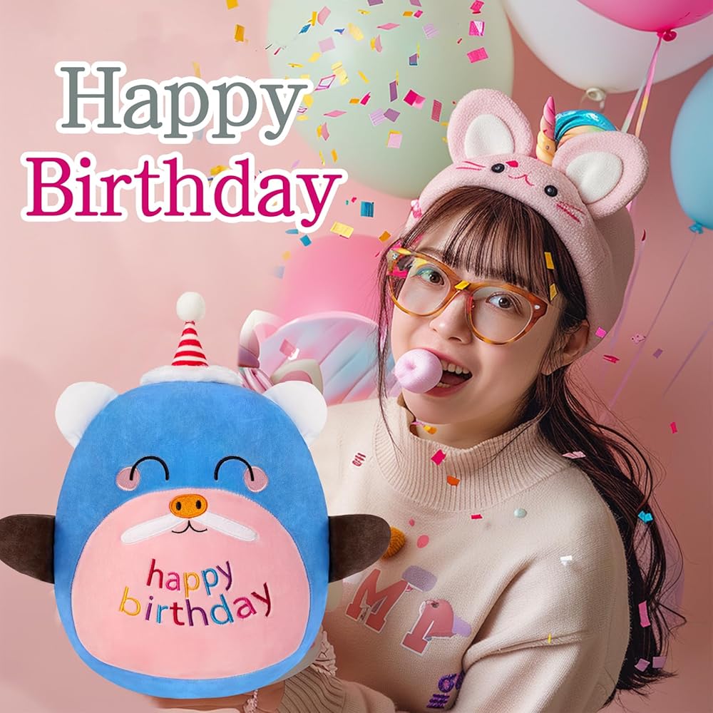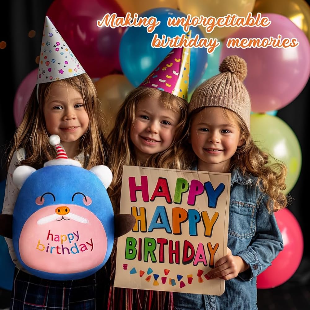 💙ORIGINAL DESIGN: This Birthday Pig Plush Pillow is a Loren J Designer Original! A brightly colored birthday hat, smiling eyes that make you feel happy, and the words "Happy Birthday" embroidered on his belly are all elements that add to the unique charm of this birthday pig. Add the Birthday Pig Plush Pillow to your plush pillow collection!