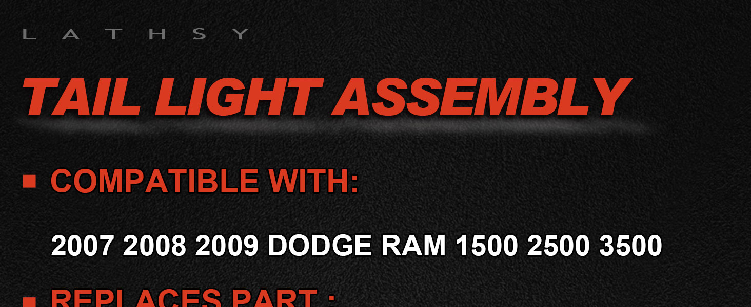 Easy to replace in minutes,our Dodge Ram taillights include bulb direct plug and play.No Installation Guide or Instruction Included, it is recommended to find installation video or professional installation.