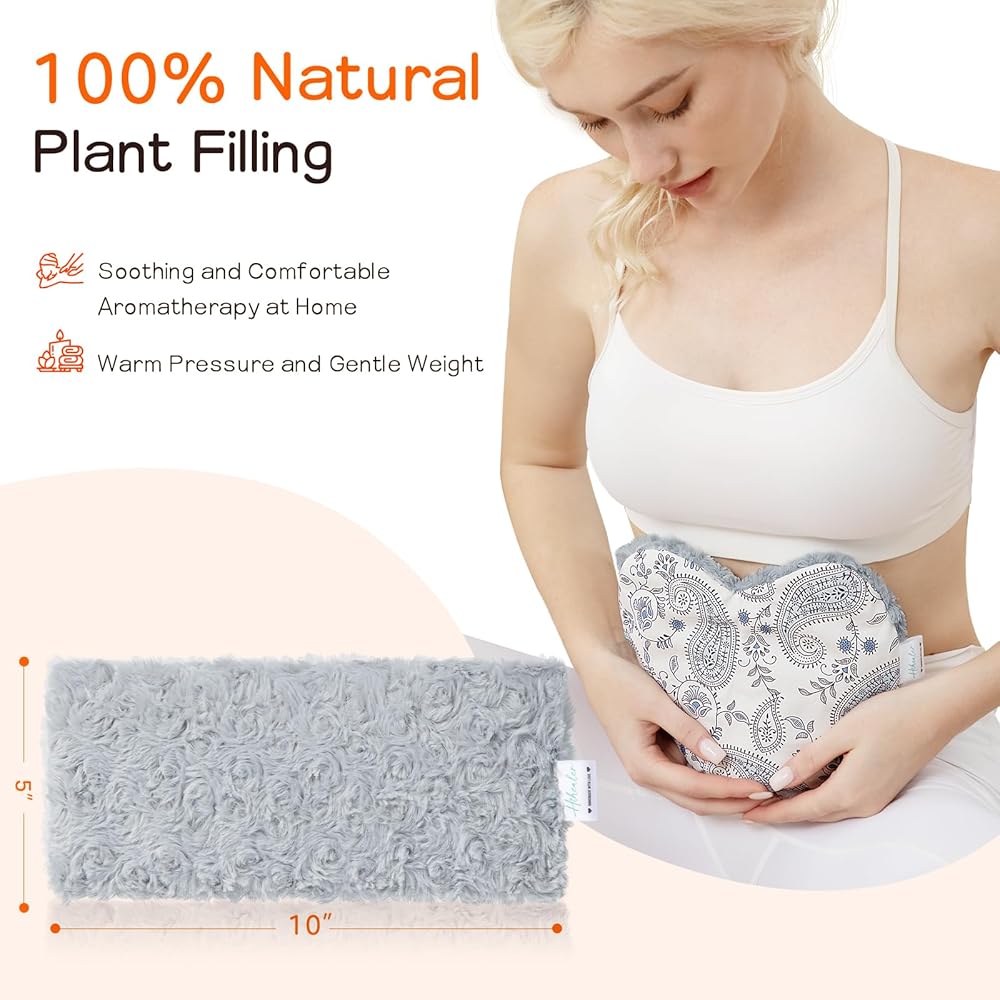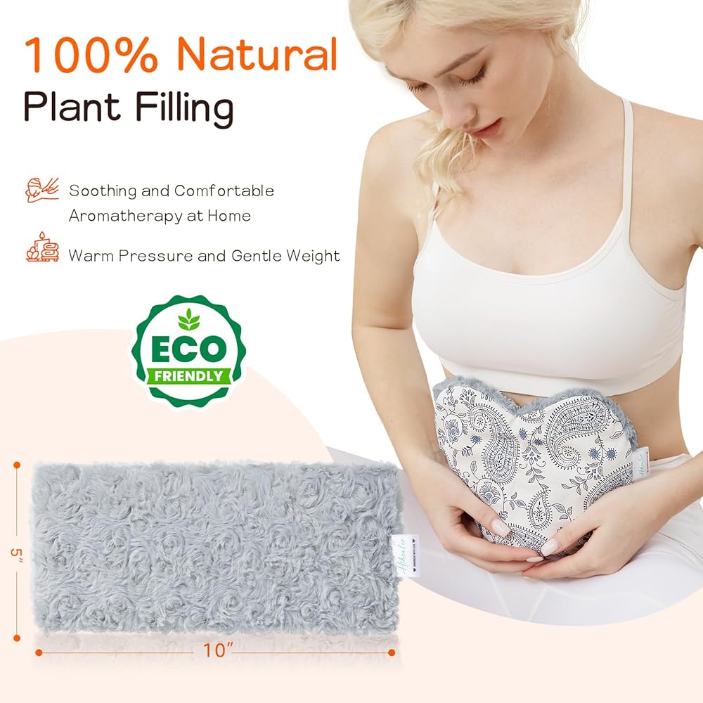 Lavender Heating Pad: Flax seeds offer optimal heat retention, and the heat aligns more closely with the body's natural absorption, while the scent of lavender promotes deep relaxation of the mind and body