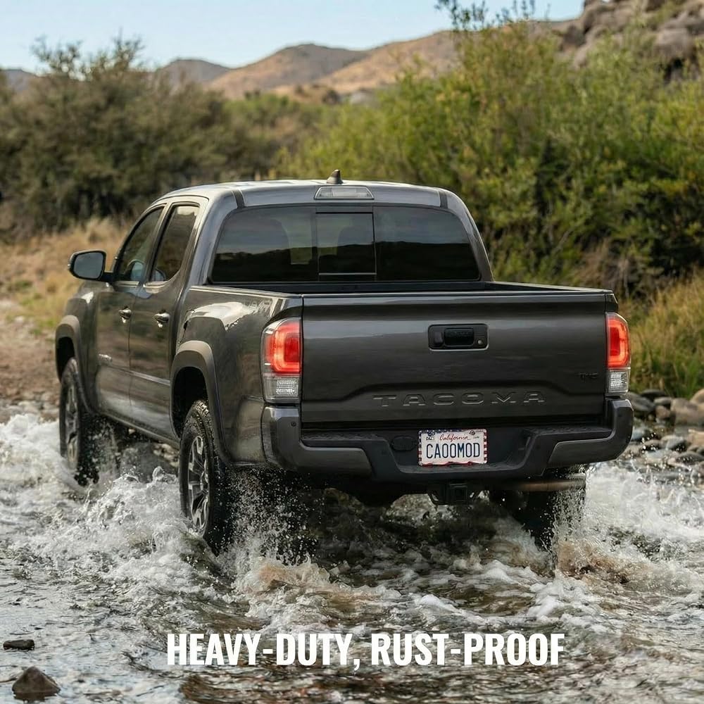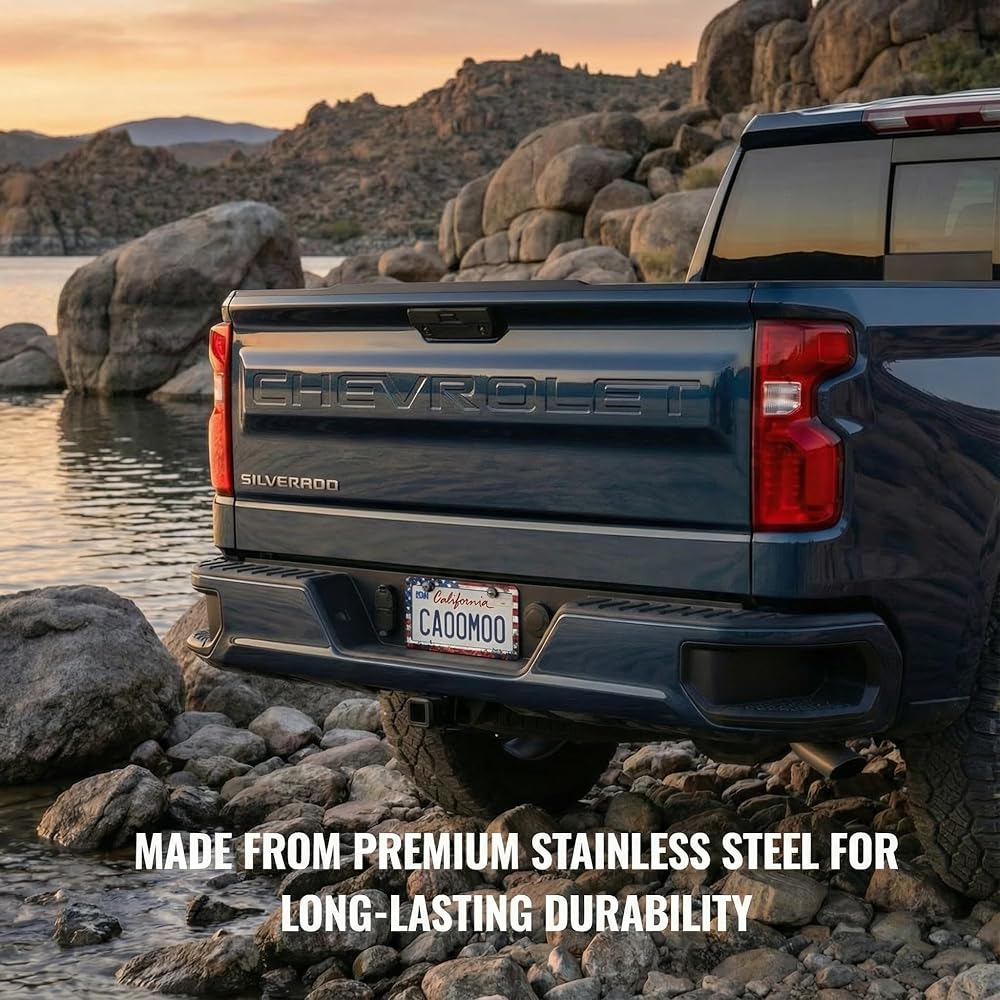 Easy install - Comes with 2 license plate holders, 4 American flag screw caps, 4 self-tapping screws, 4 machine screws, 4 washers, and 1 screwdriver