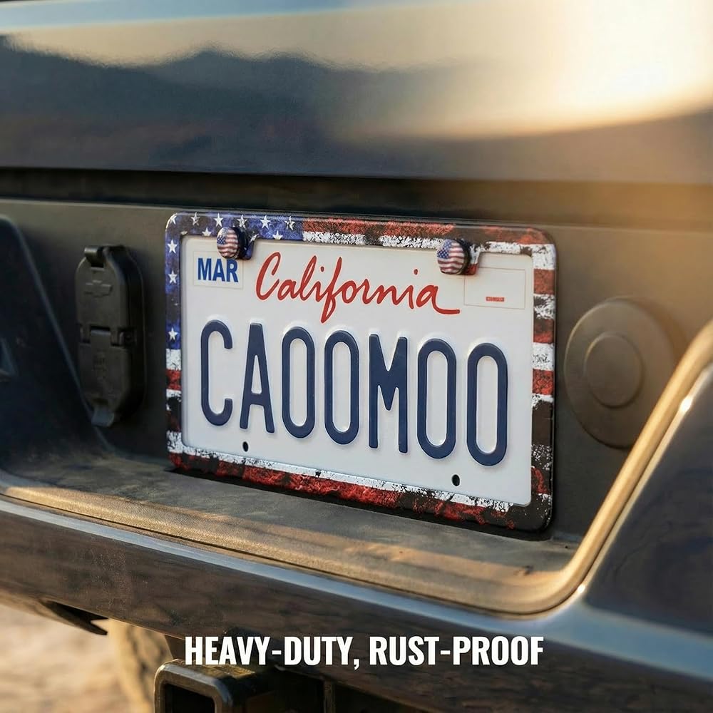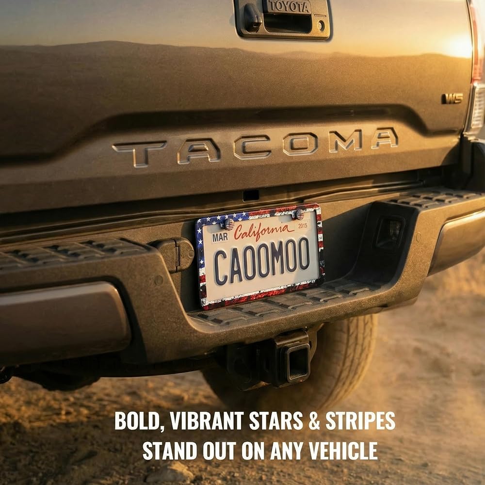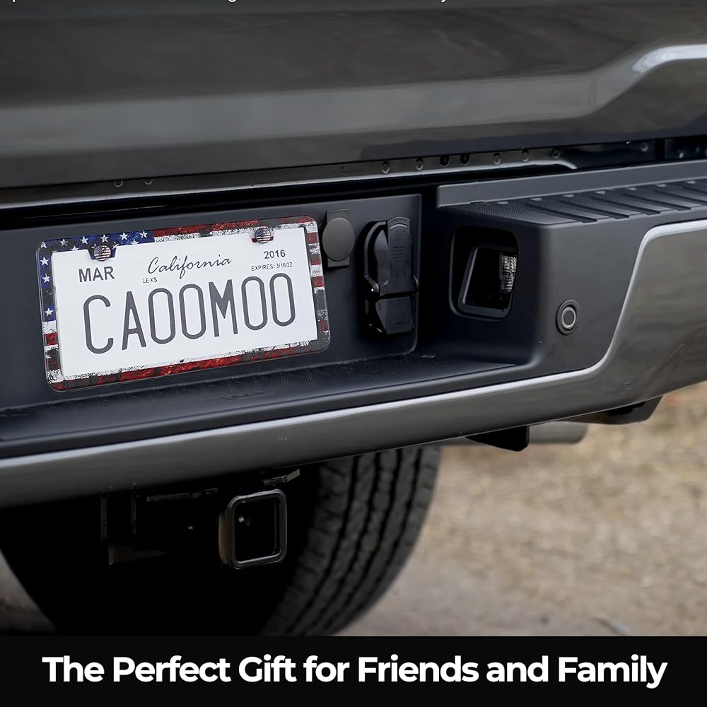 Display your patriotism - Show your American pride, the love of liberty and freedom of the flag with the our 2pc premium Rustic Design American Flag License Plate Frames! In God We Trust!