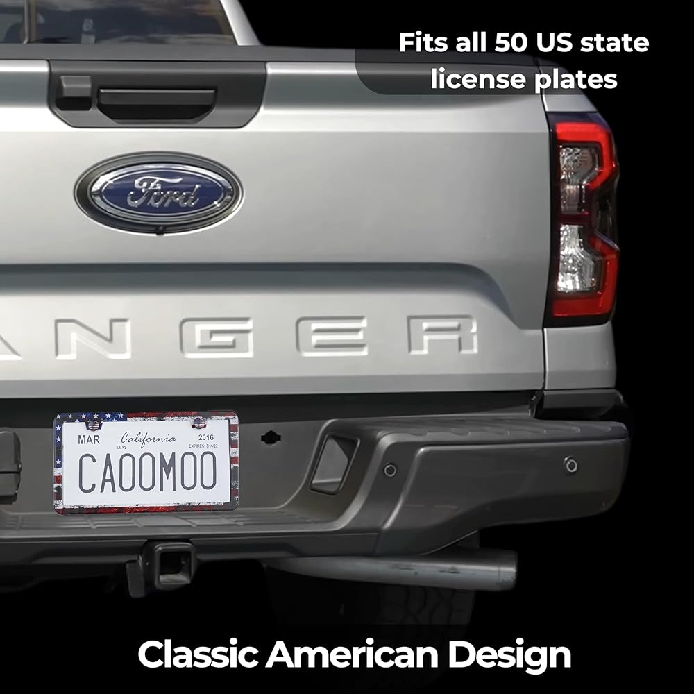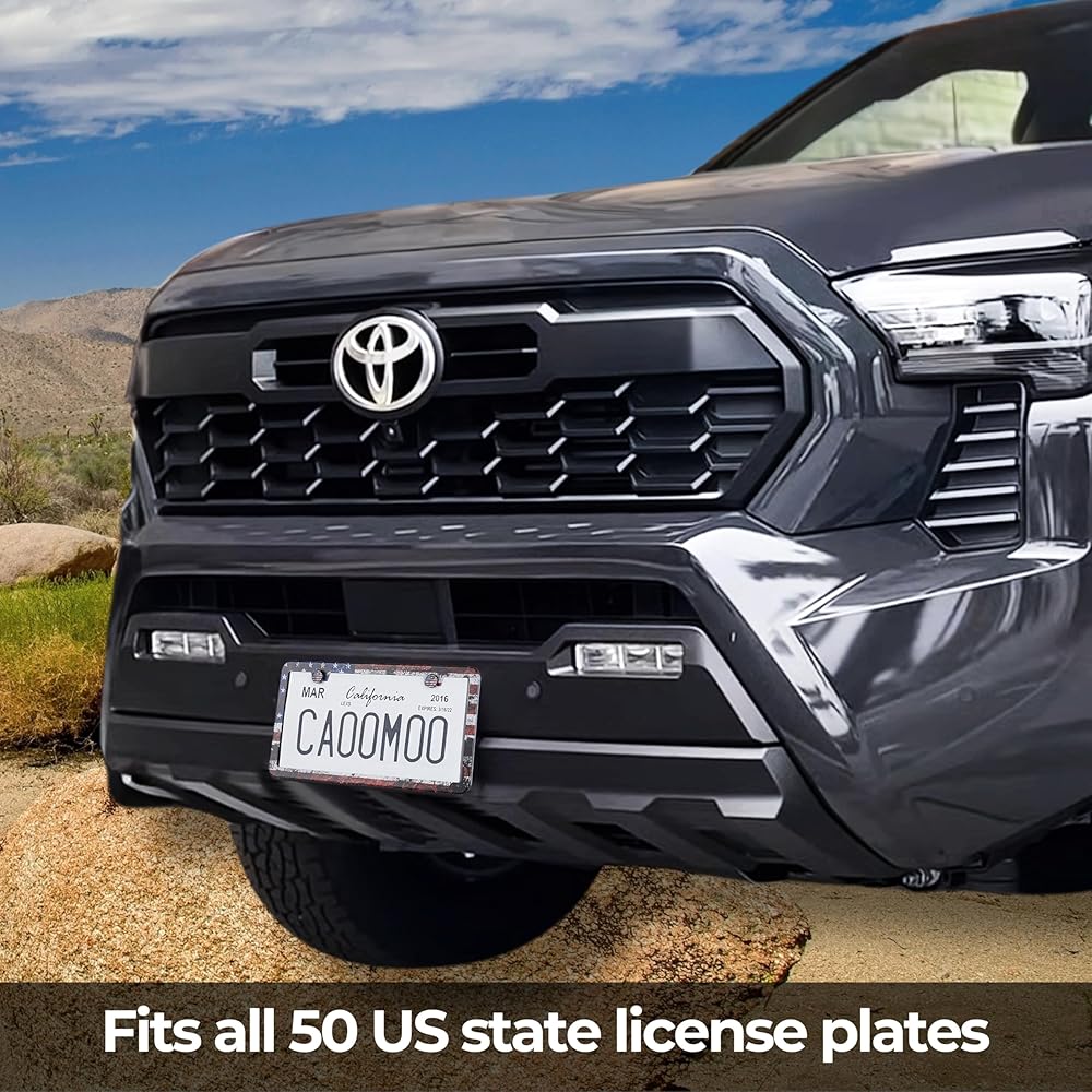 Street legal & Universal fit - Designed to fit all 50 US state license plates, our car plate frame does not cover the state tag. Size 6-5/16" x 12-1/4". Enjoy your new car accessory with a peace of mind.