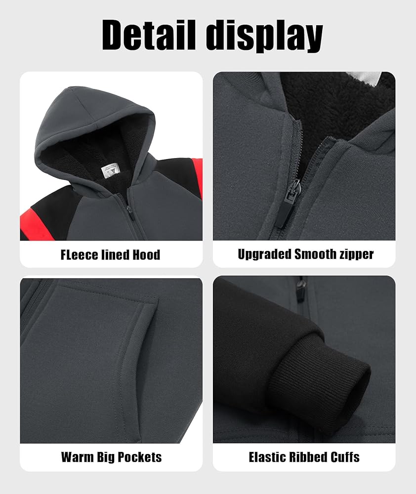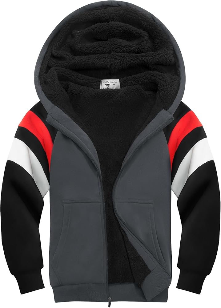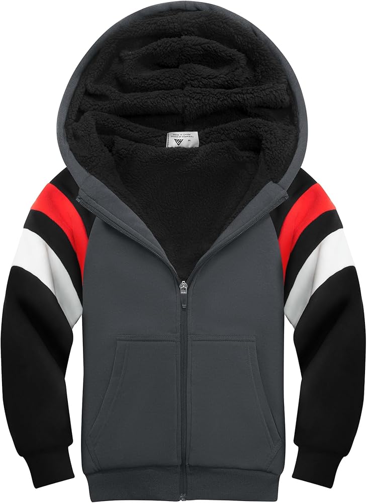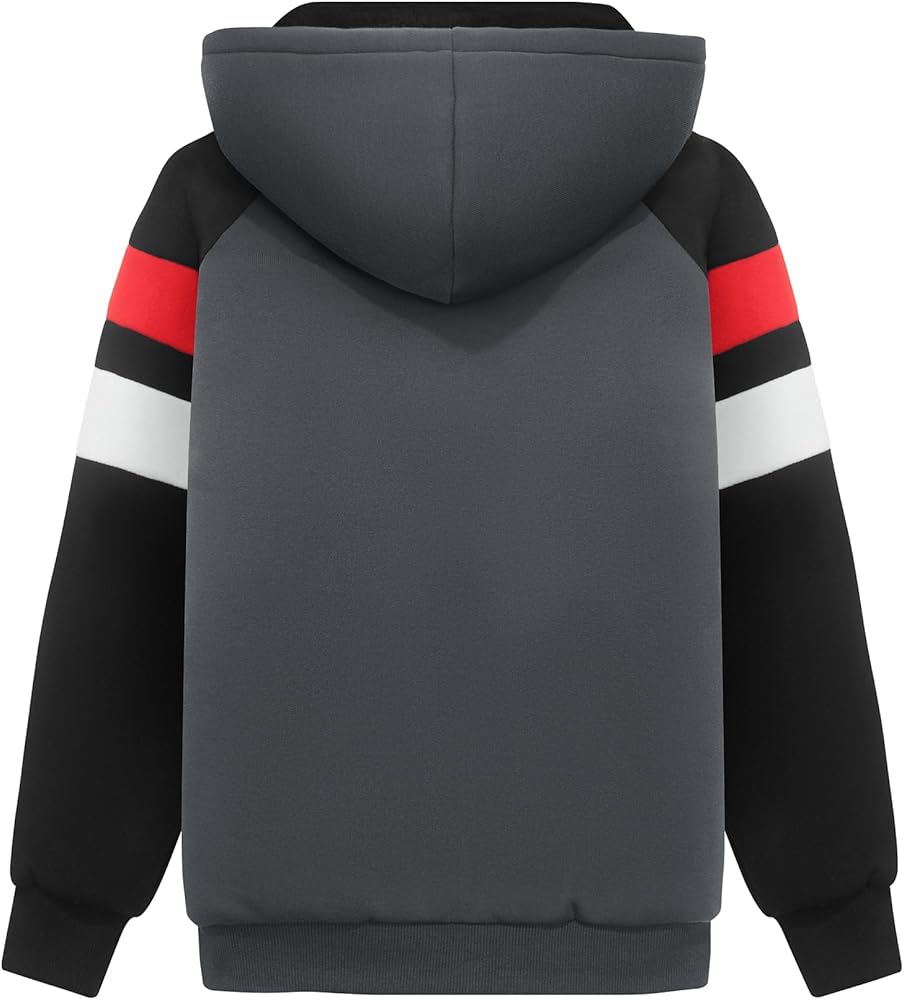 【FEATURE】Thick fleece lined boy hoodie, Keeps warm and comfortable. Original color block boys jacket, cool and fashionable. Not cracking, fading or flaking, can be match with T shirt, sweater or shirts for versatile styling