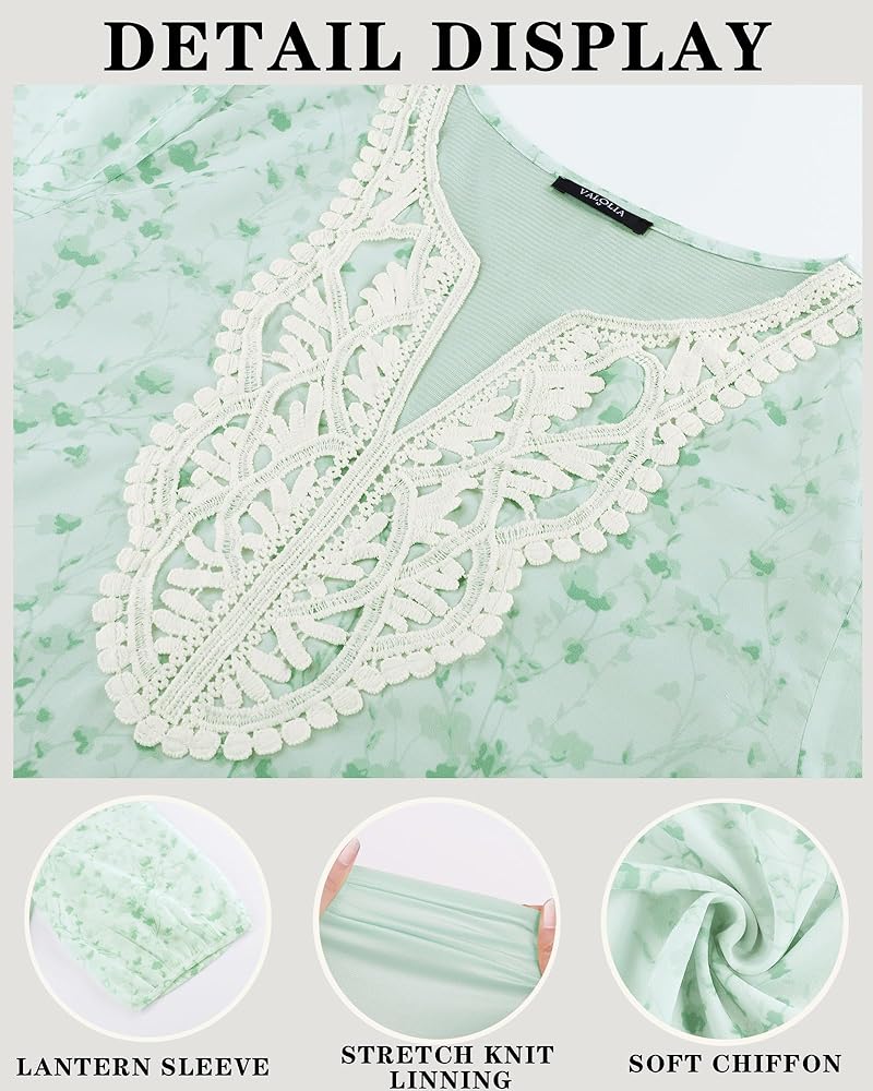 【Material】100%Polyester.High-quality lightweight fabric and double-layer chiffon make it more comfortable and breathable.The vertical texture and patchwork lace design add it an elegant touch.The womens causal blouse will perfect fit and keep you soft all day without tightness. Machine wash with a laundry bag or hand wash.