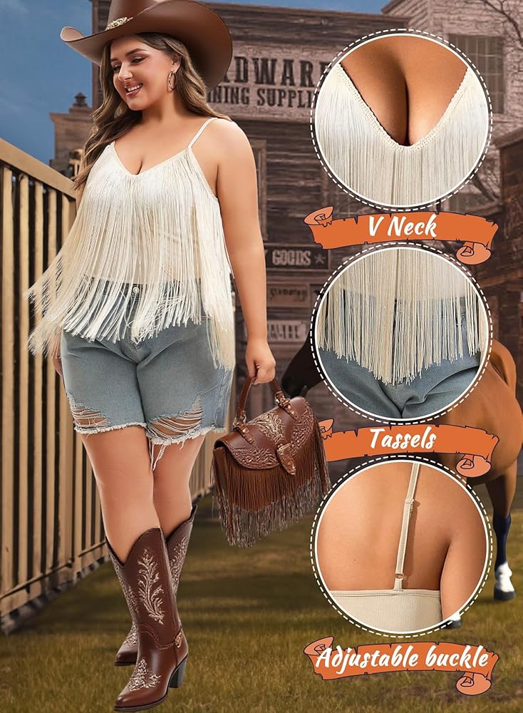 🎩 Western Country Concert: Elevate your festival and concert style with our Plus Size Fringe Top. This boho tassel hem tank is perfect for spirited individuals looking to make a statement. Available in plus sizes, this cowgirl outfits for women combines comfort with fashion forward flair.