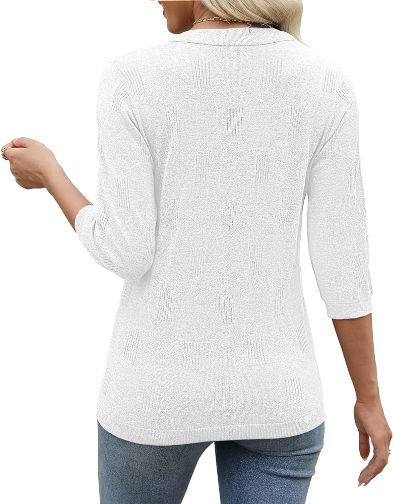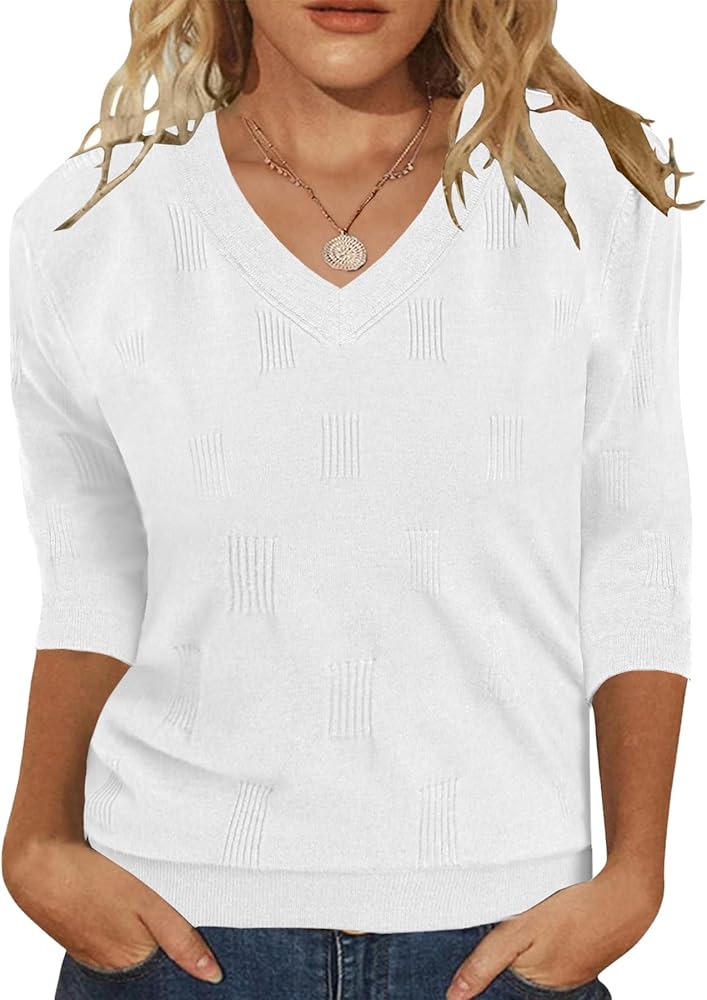 Feature: Casual style, 3/4 sleeve tops, v neck, solid color, unique ribbed block pattern, loose fit, trendy and elegant