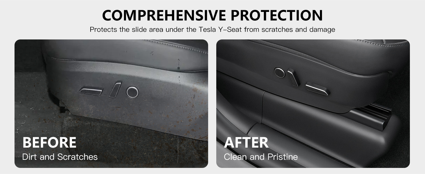 【Seamless Integration】Customized for the 2020 2021 2022 2023 2024 Tesla Model Y, the all-inclusive design ensures a seamless fit, protects the seat tracks from dirt or wear and tear, and keeps the interior of the car tidy for the long term.