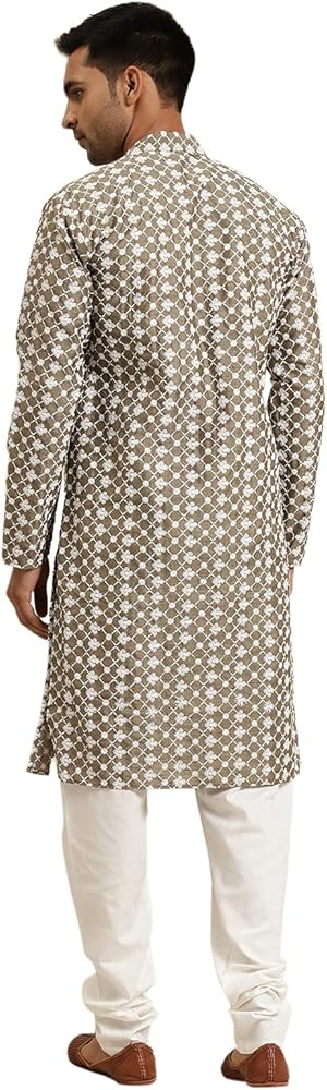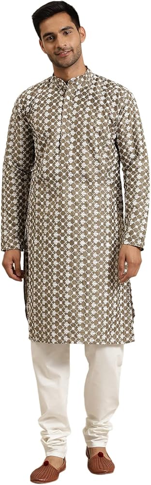 Sojanya (Since 1958 Men'S Silk Blend Embroidered Kurta &Churidar Pyjama Set.