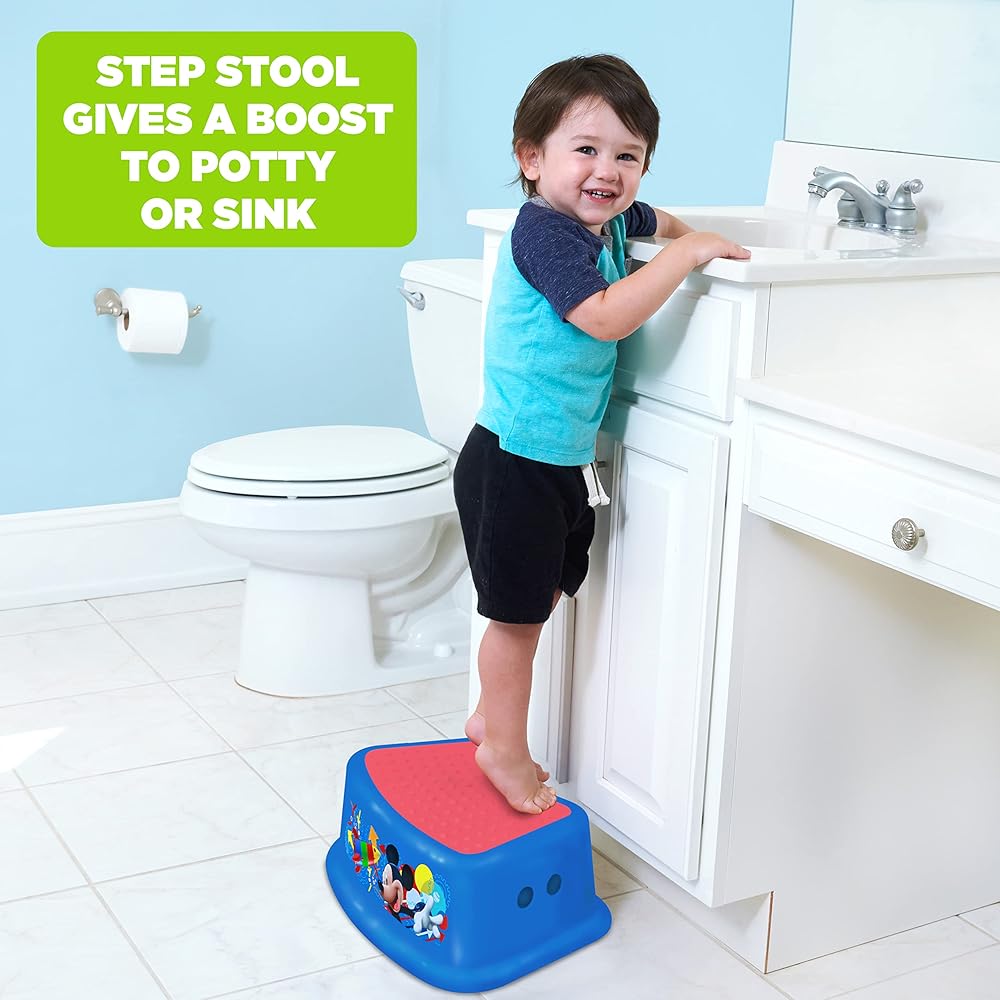 Disney Mickey Mouse Clubhouse Capers Bathroom Step Stool for Kids Using The Toilet and Sink - Kids Step Stool, Potty Training, Non-Slip, Bathroom, Kitchen, Lightweight