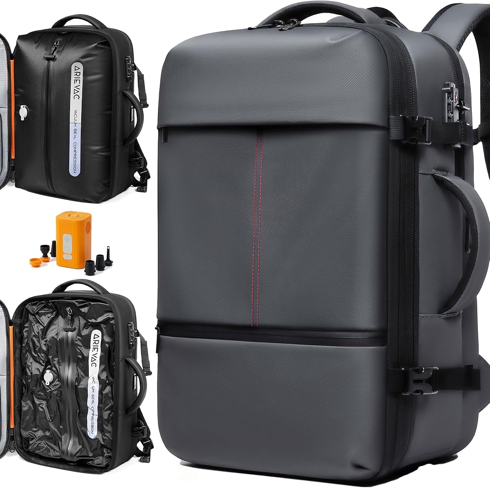 【Expandable Capacity】This vacpack capacity can reach up to 60 Liters, equivalent as a 24-inch rolling suitcase, but its size remain as a carry-on, measuring 12 * 7.8 * 20 in, no extra baggage fees, airline boarding hassle-free.
