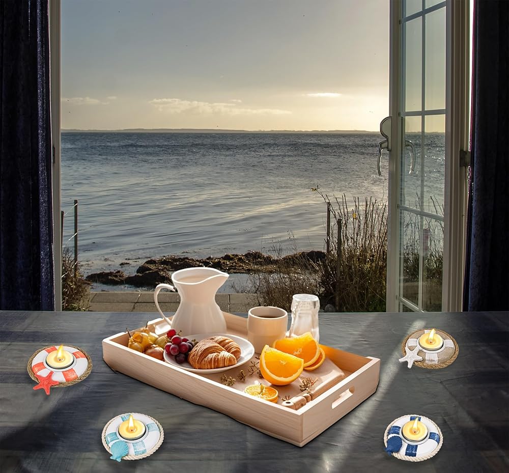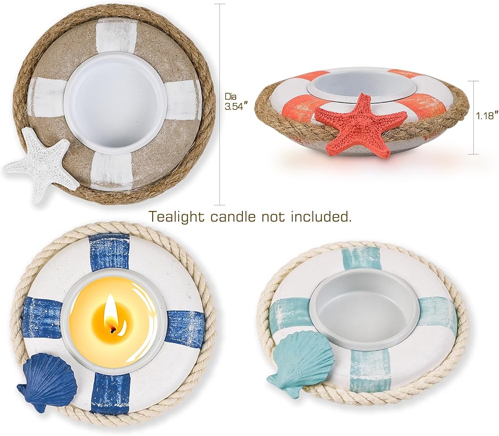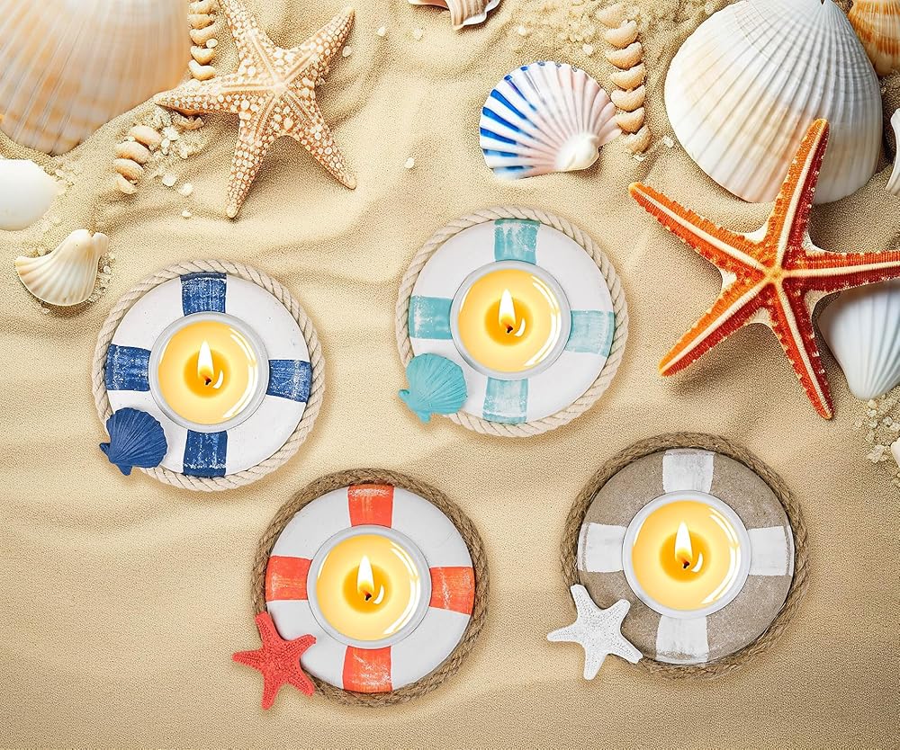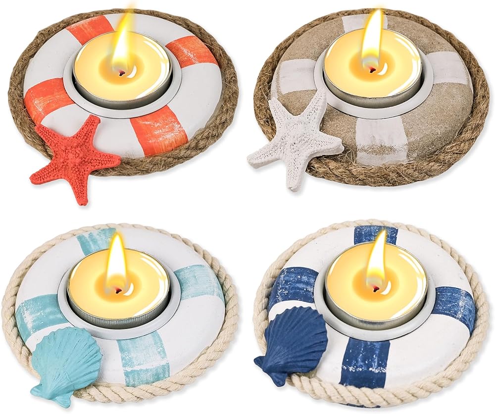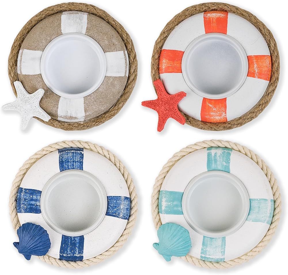 SAILINGSTORY Wooden Life Ring Tealight Candle Holder Nautical Coastal Beach Decor Votive Candle Holder Set of 4 Pack