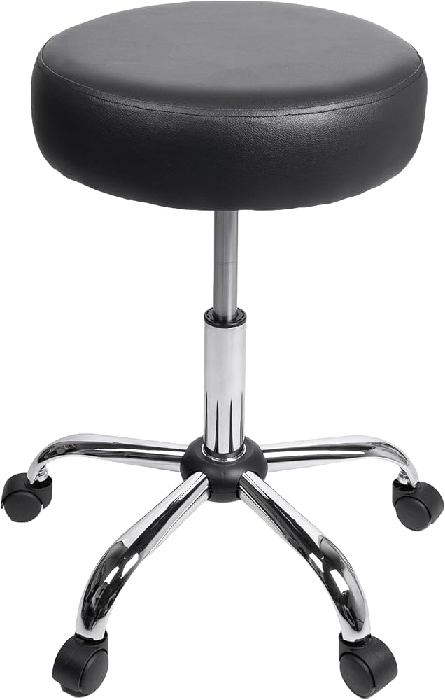 BodyMed Rolling Exam Stool with Wheels, 18.5 Inch to 25 Inch Adjustable Height for Dentists, Spas, & Healthcare Environments, 5 Casters, Easy Assembly, Black