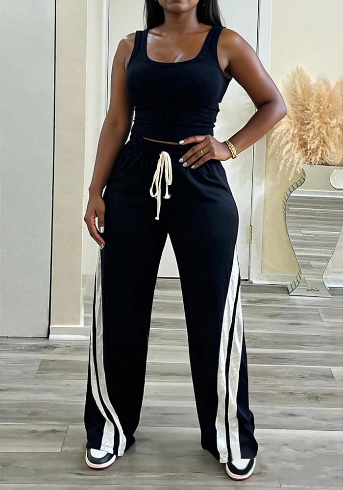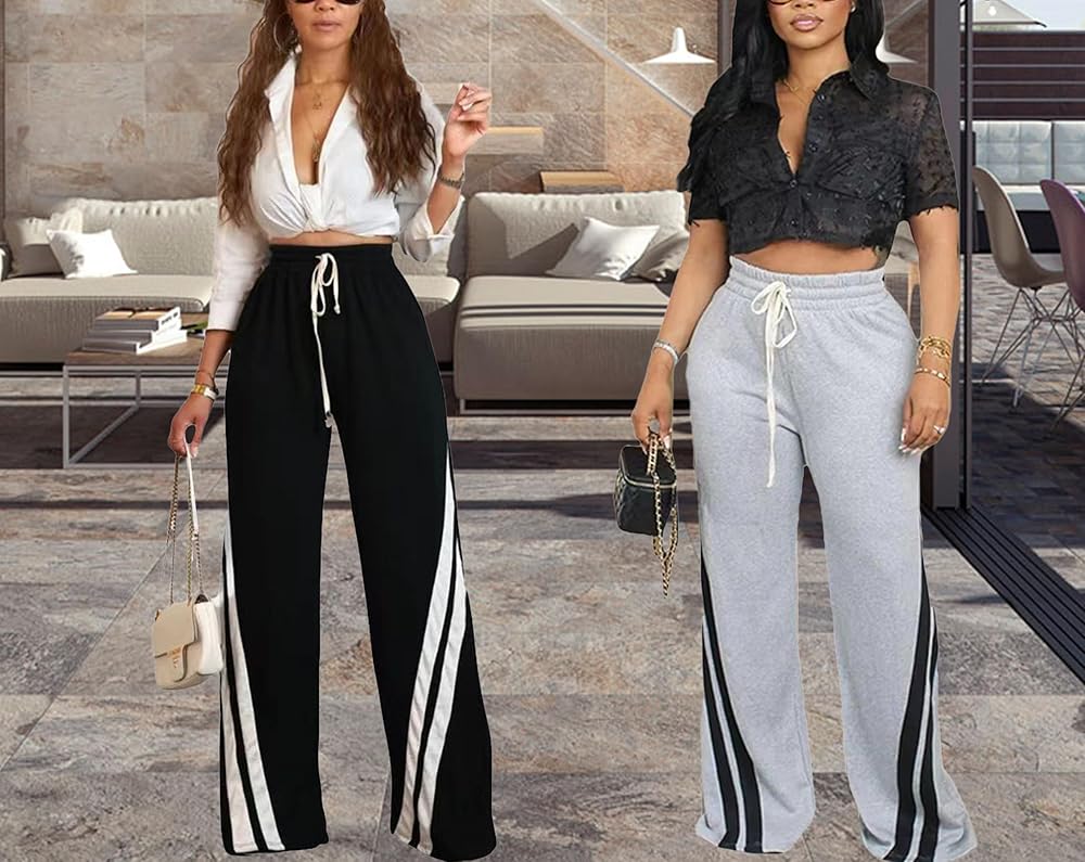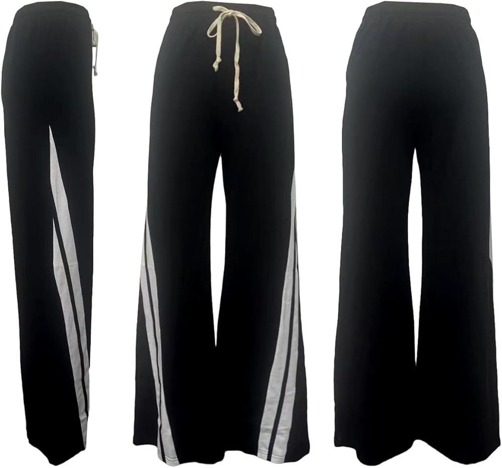 Features: Women sweatpants,casual street style, lightweight, loose,baggy, high waisted wide leg, elastic waist drawstring,striped, flare fit, classic color clash design on the side. Stylish and versatile, a must-have item for everyday styling.