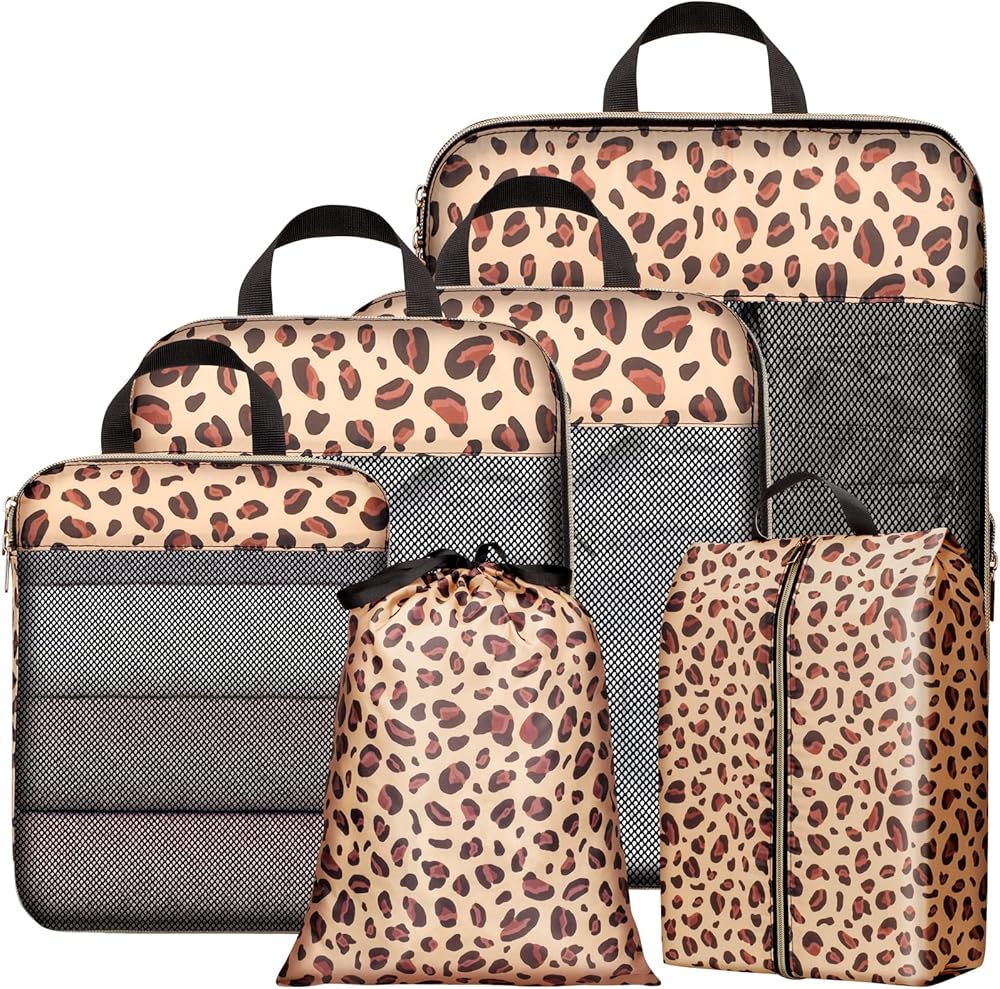 Cambond Compression PackinCompression Packing Cubes for Travel, Cambond 6 Set Packing Cubes for Suitcases Expandable Luggage Organizers with Shoe Bag and Laundry Bag (Leopard Print Gold)g Cubes for Suitcases - 4 Pack Luggage Travel Packing Organizers Compression Cubes for Travel Essentials (Blue Purple Gradient),