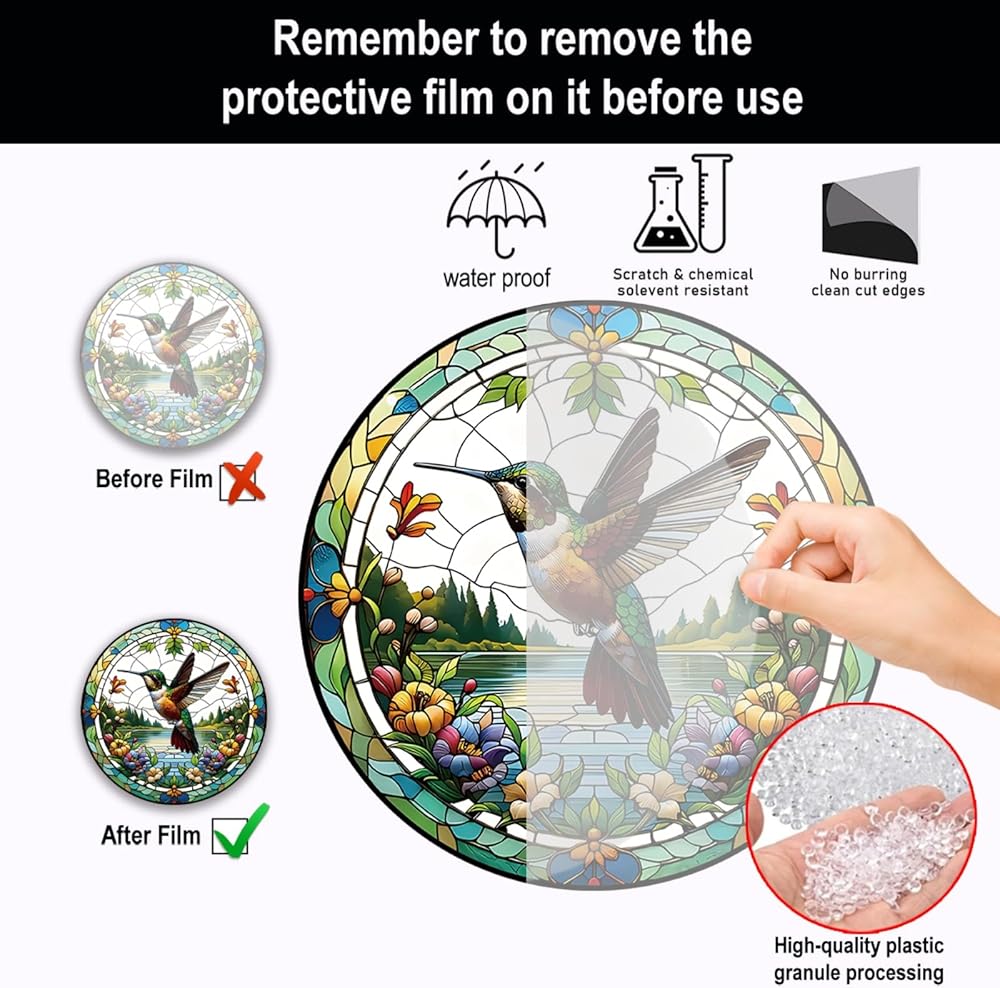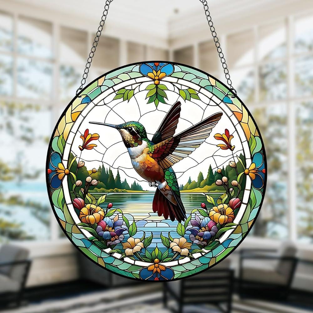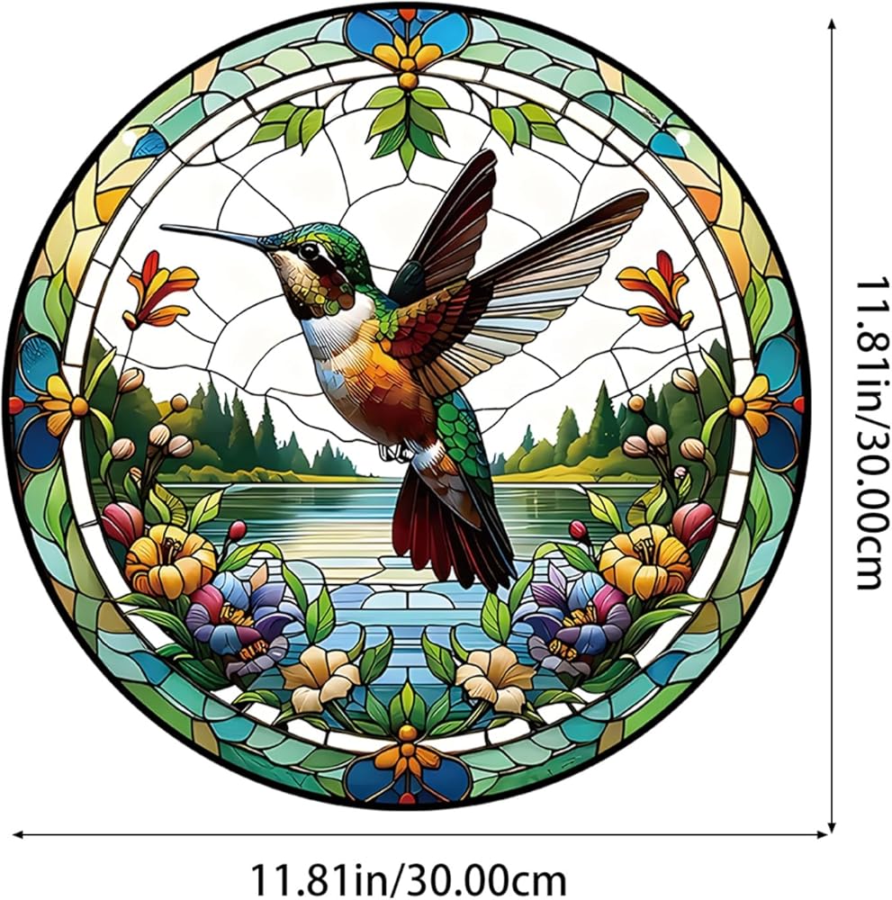 Generic 11.8 Inches Hummingbird Acrylic Window Hanging Decor Stained Glass Panels Natural Scenery Wall Art Mural for Bedroom Garden Wall Decoration Suncatcher Gift for Mom Grandma Teacher