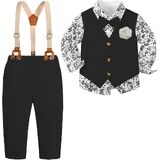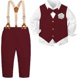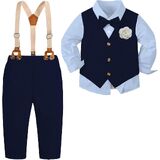 Fashion boy outfits: dress shirt with bow tie + gentleman vest + matching detachable suspender pants.